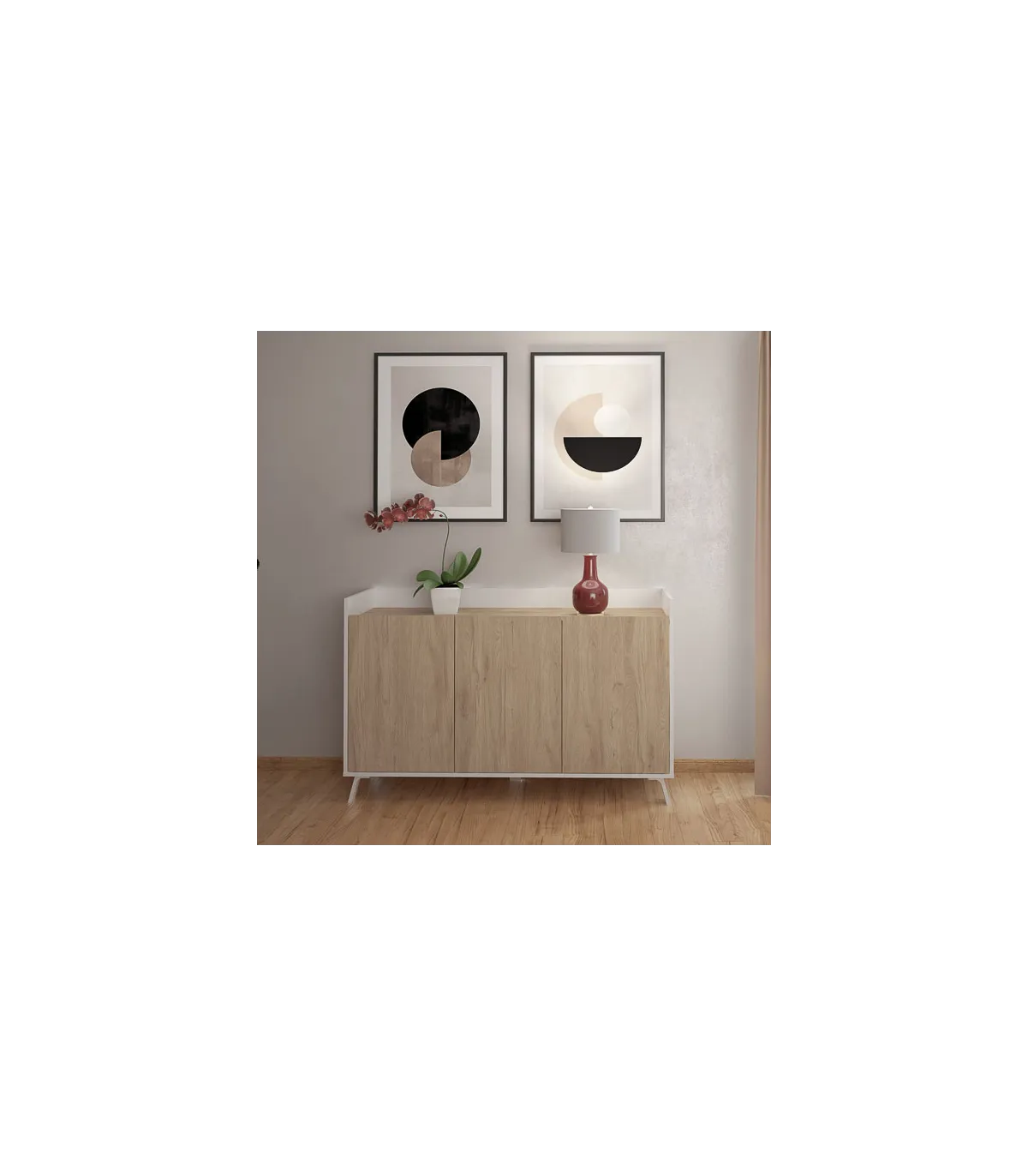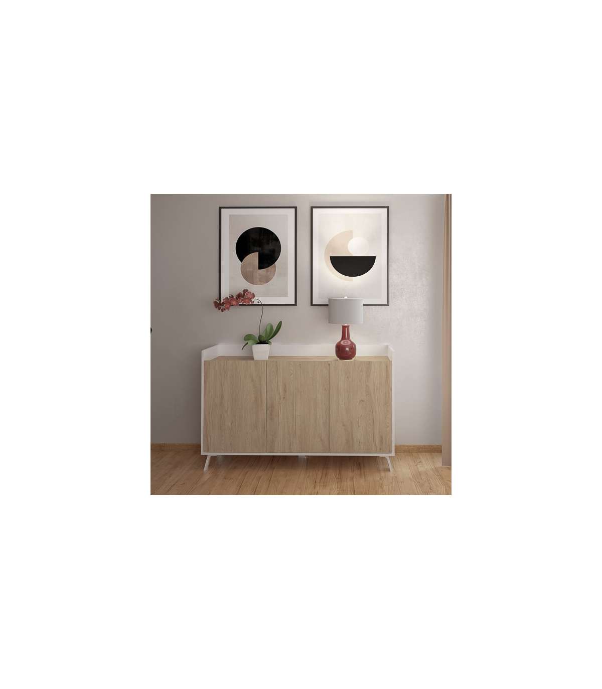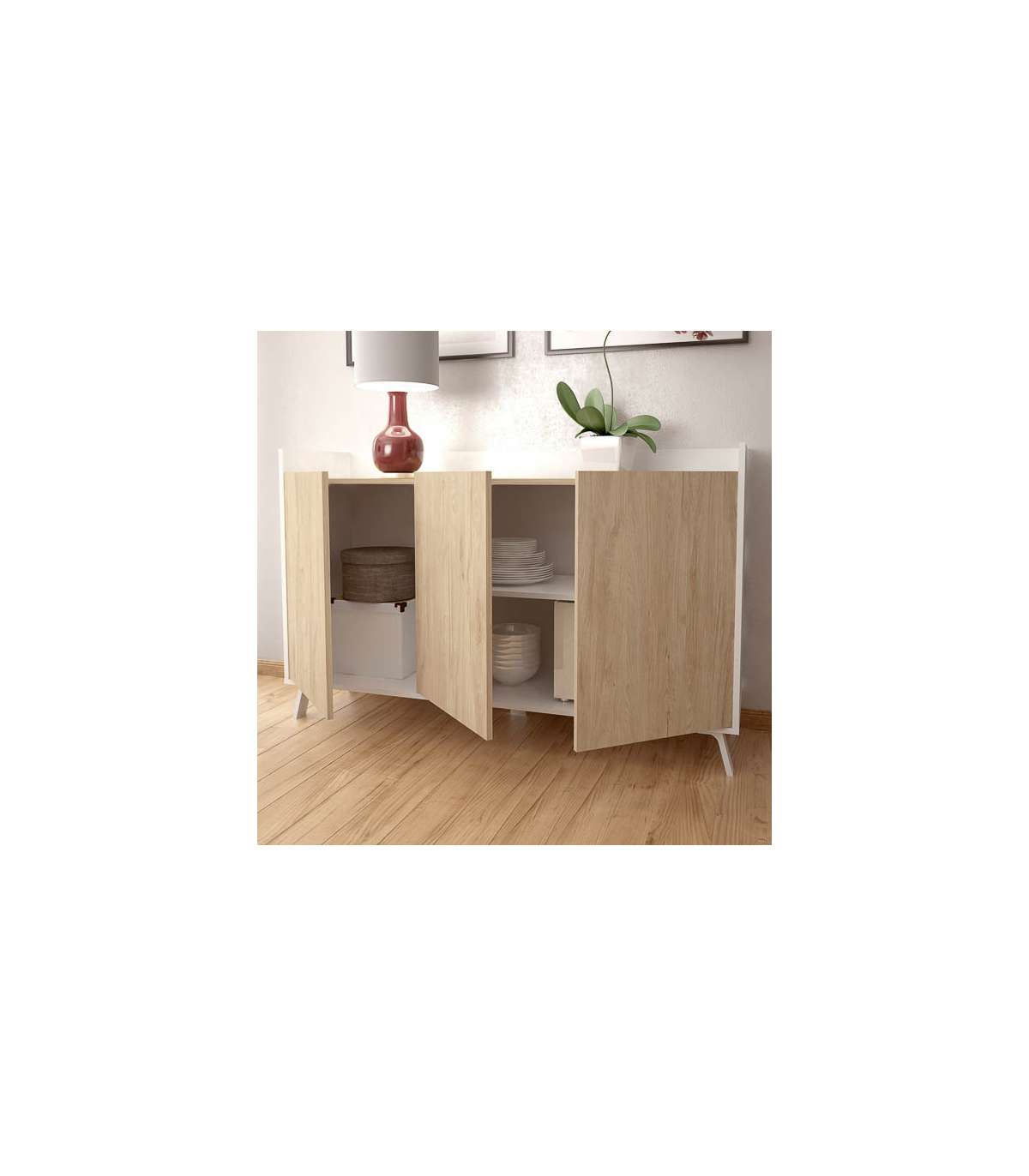 Ensemble de salon en couleur White Gloss / Canadian Oak, parfait pour mettre un grand téléviseur et le décorer comme vous le souhaitez. Il dispose également de beaucoup d'espace pour ranger tout ce dont vous avez...
