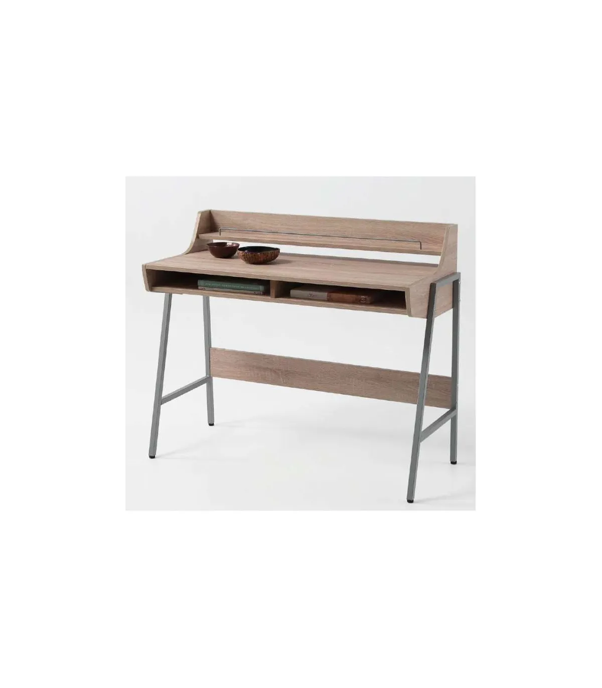 Magnifique et élégant bureau industriel Kala avec deux ouvertures et une étagère, structure en métal et bois.