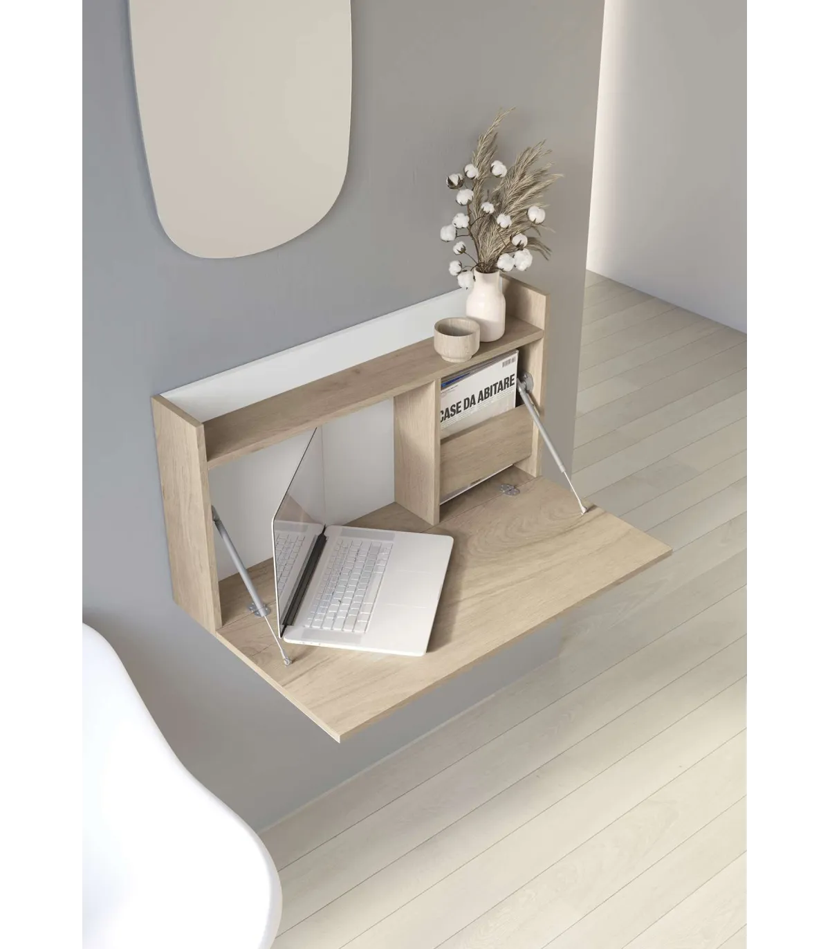El escritorio es perfecto para espacios reducidos y se puede instalar en tu salón, zona de entrada, pasillos, cocina y donde te apetezca ponerlo.