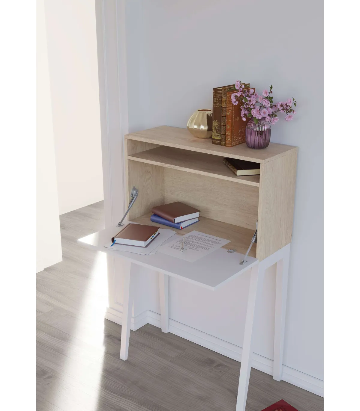 Dispone de un pequeño estante para colocar lápices o detalle decorativo, ideal para estancias reducidas
