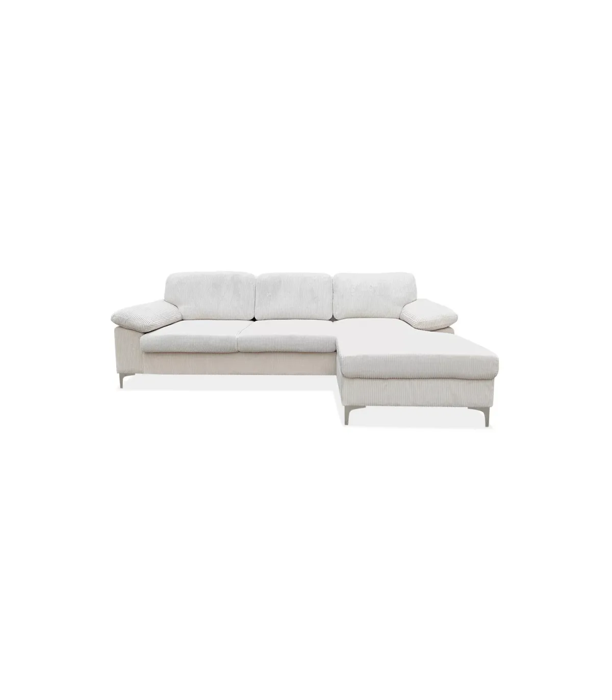 La longue assise est dotée d'un pouf de 78 cm de large et de 60 cm de profondeur qui peut être placé d'un côté ou de l'autre en fonction de la disposition du salon.