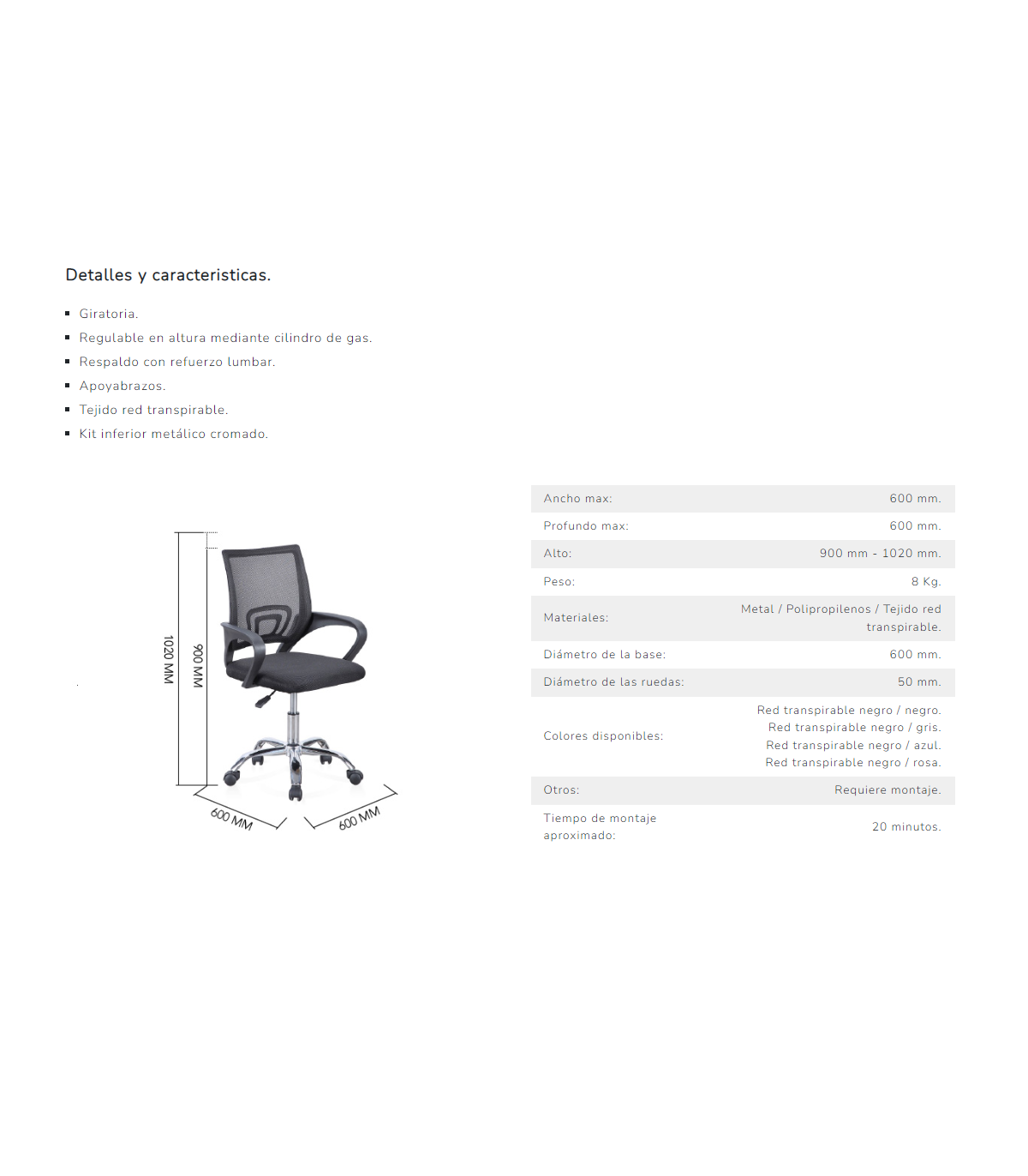 Chaise pivotante élégante et fonctionnelle qui donnera de la prestance à tous les espaces dont vous avez besoin, parfaite pour un bureau, un cabinet ou même un bureau de jeunes.