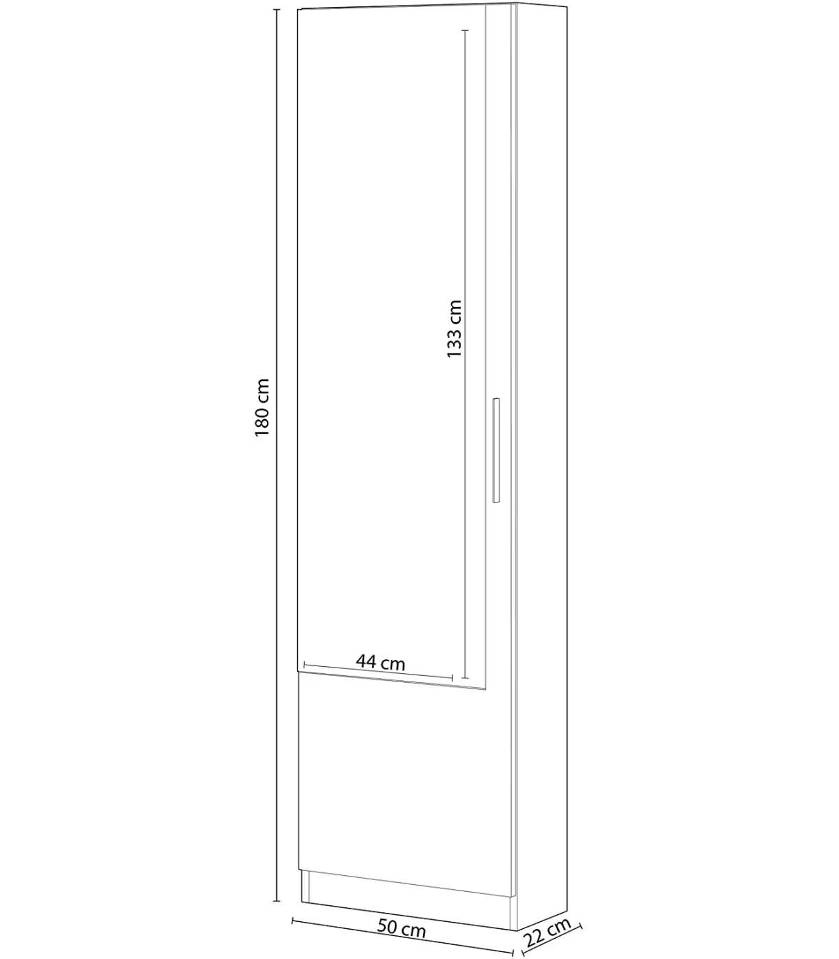 - Unité : 180 cm (hauteur) x 50 cm (largeur) x 22 cm (profondeur)