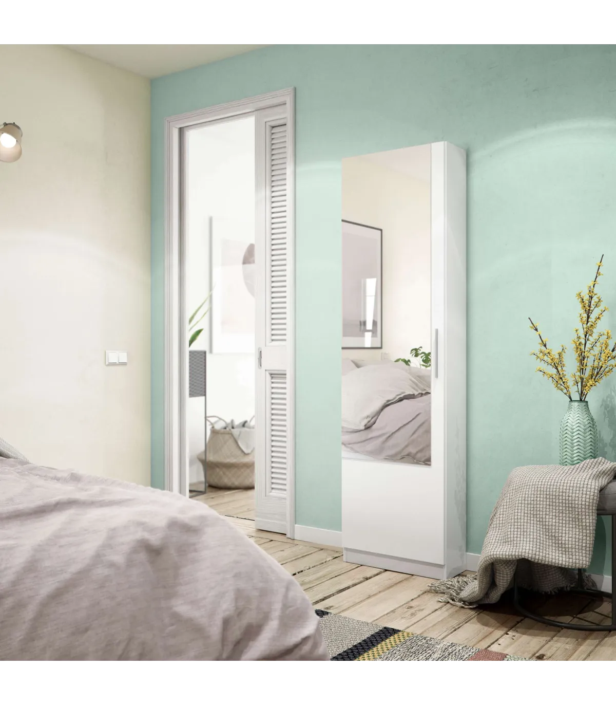Armoire à chaussures avec miroir Gusto en blanc artik. 50 cm(largeur) 180 cm(hauteur) 22 cm(profondeur)