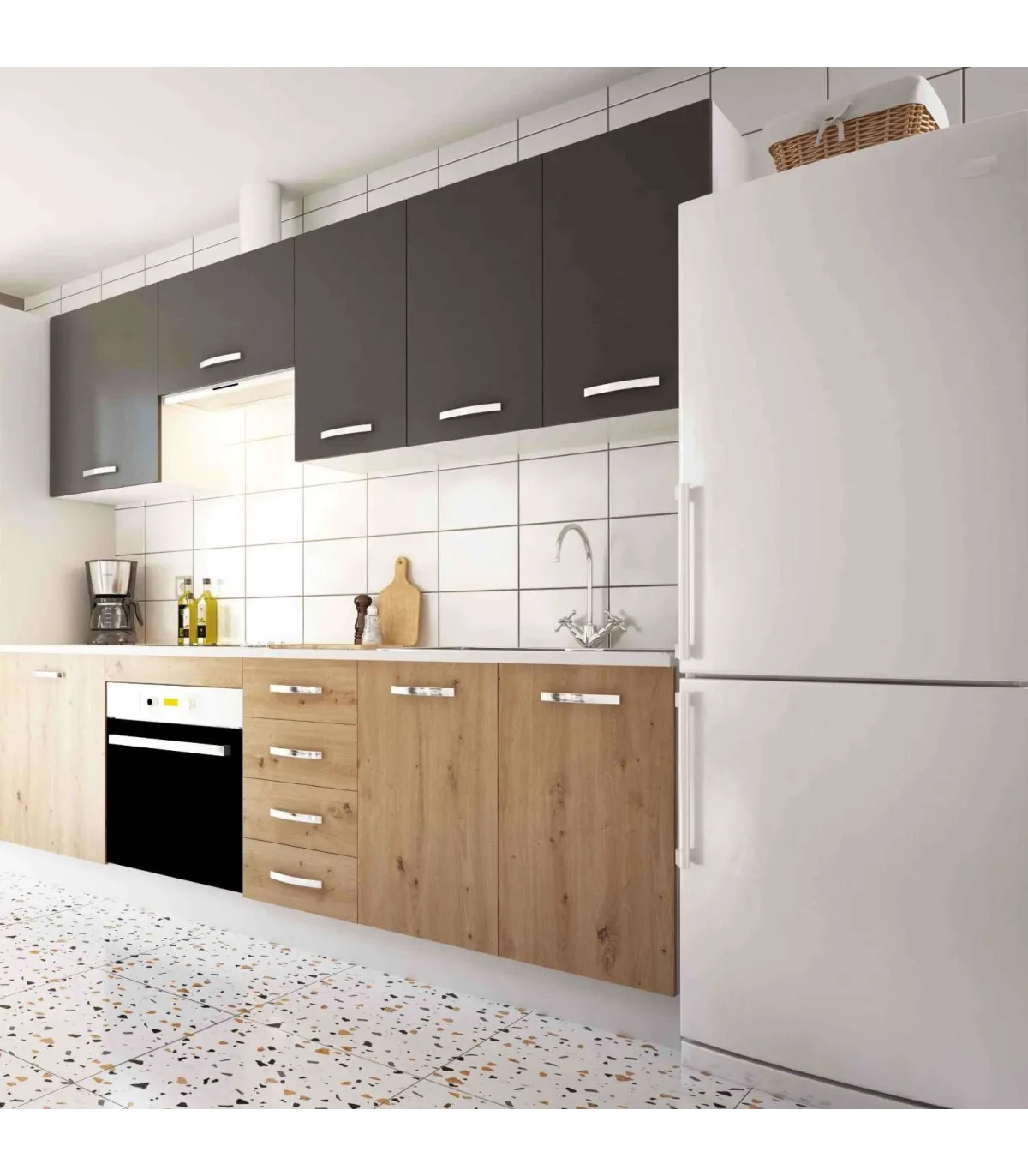 Cuisine complète en couleur chêne avec un beau design et à un prix incroyable.