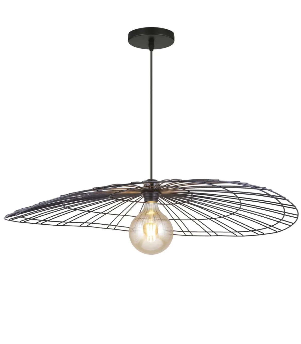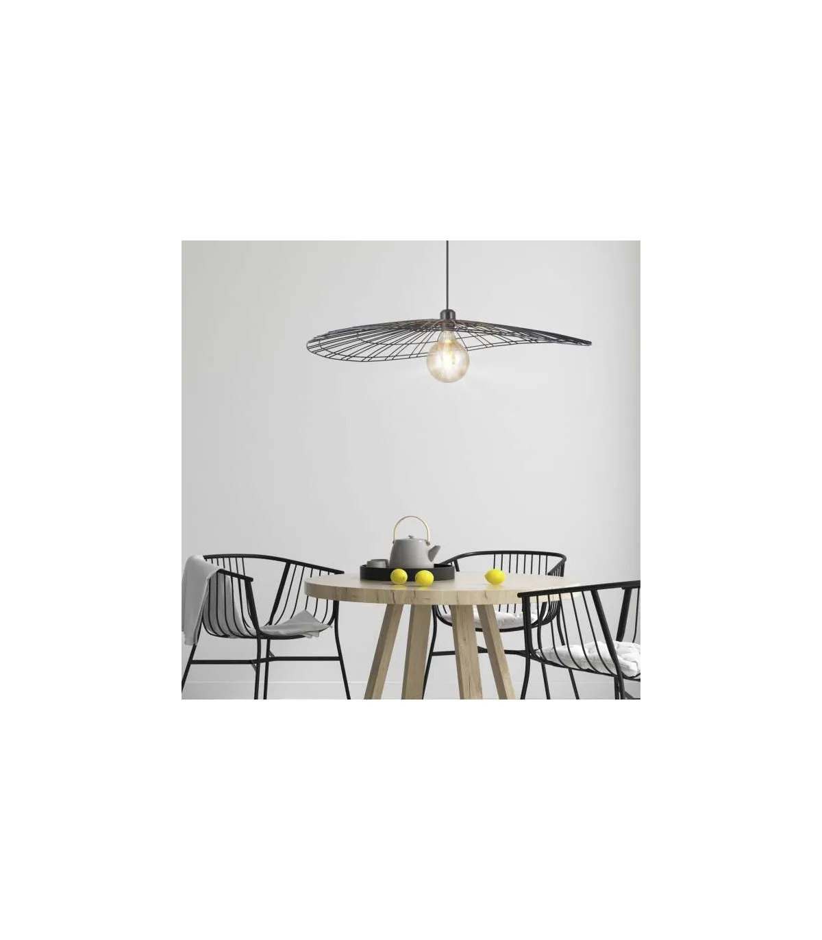 Pendentif Salina Noir, design en fer laqué, avec une forme imitant une grande Pamela, et utilisez l'ampoule Led que vous aimez.
