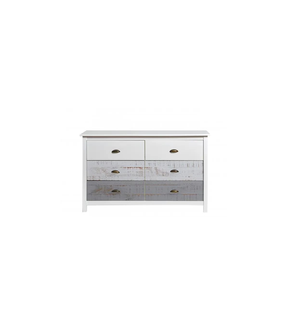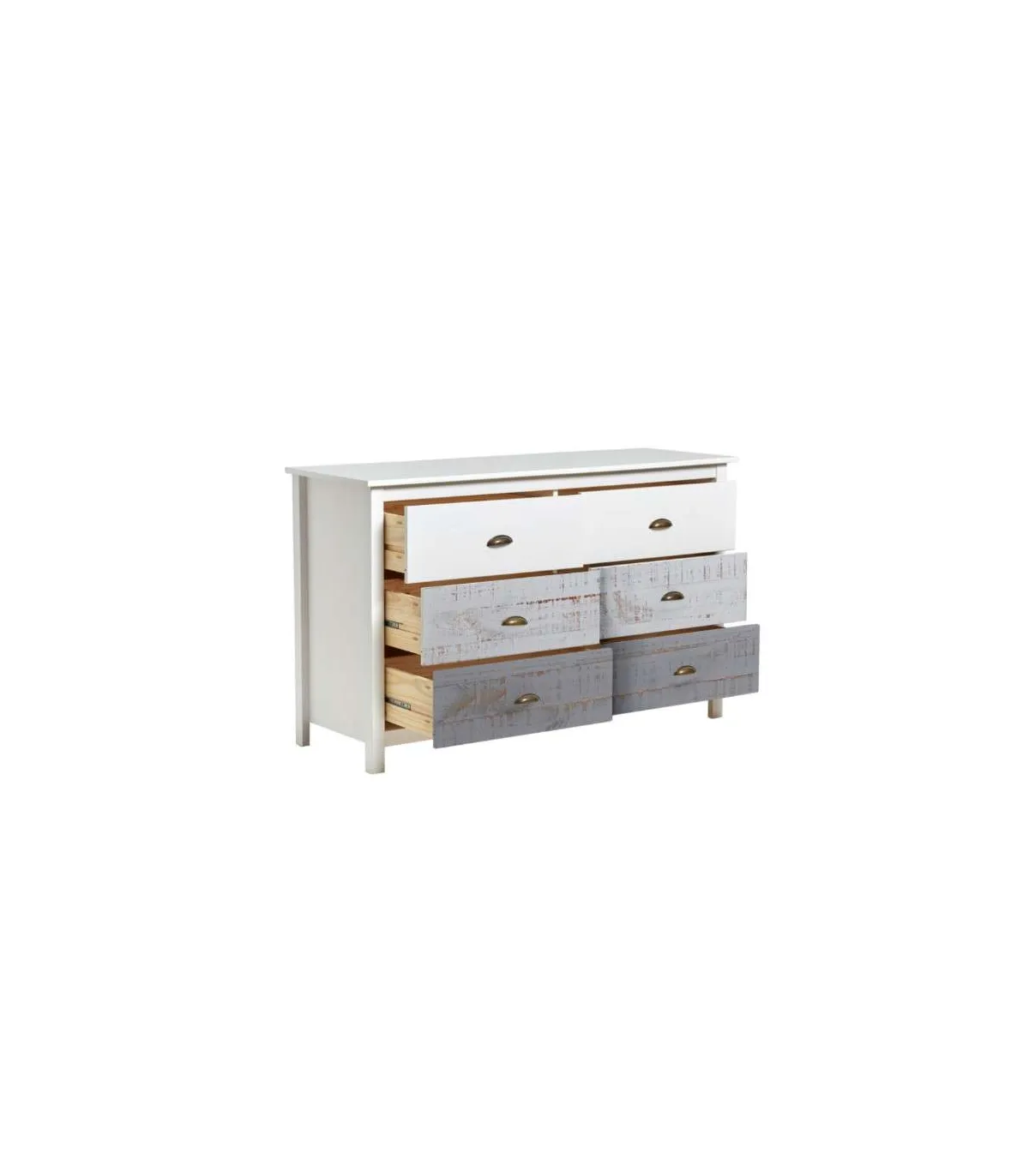 Commode modèle Romantica 6 tiroirs finition multicolore, 130 cm (L) 45 cm (P) 80 cm (H)