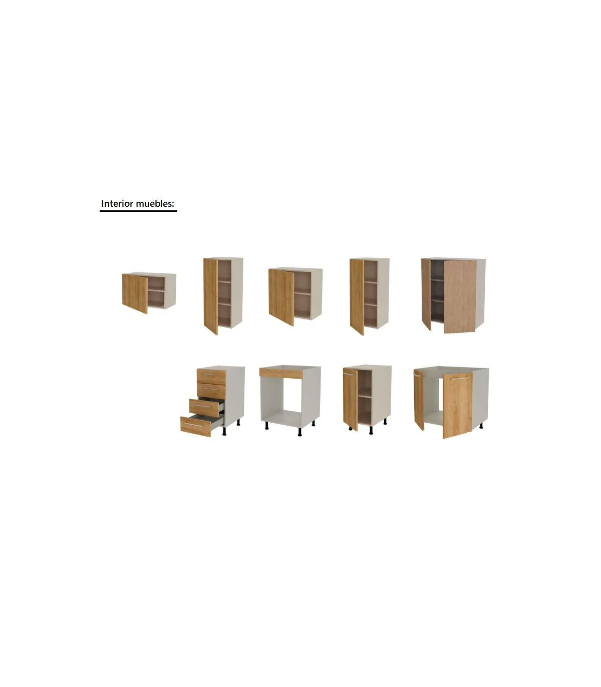 - Mueble bajo para horno: 850x600x600 mm (alto x ancho x fondo).