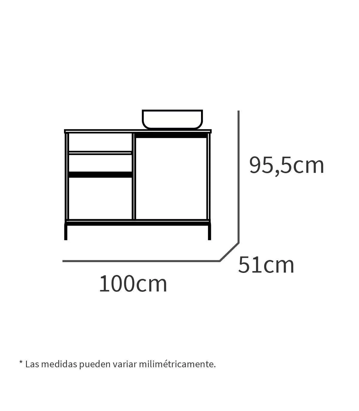 Medidas: 100cm (Ancho) X 95cm (Alto) X 51cm (Fondo)