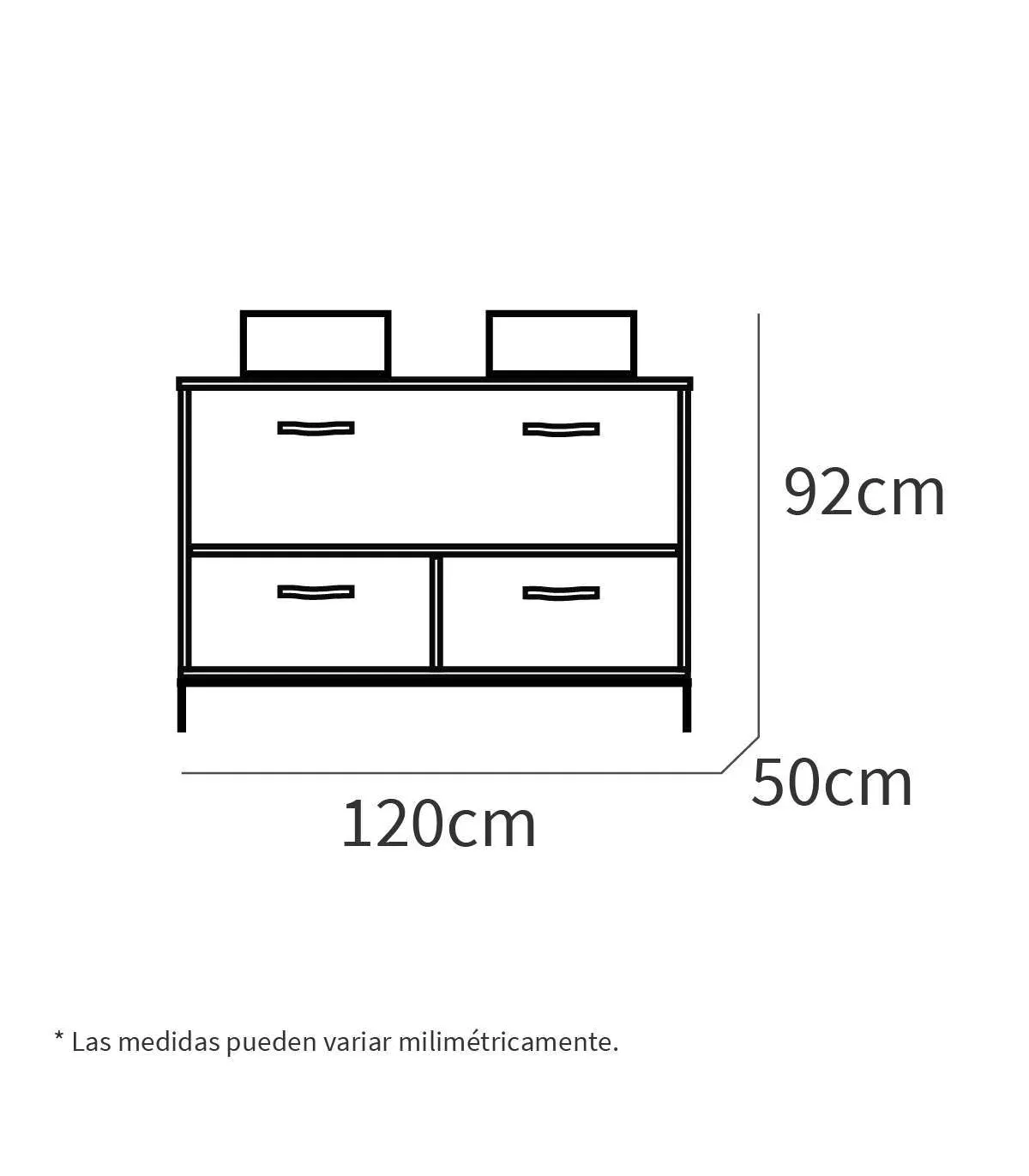 Dimensions intérieures des tiroirs supérieurs : 12 x 27,5 x 33 cm (hauteur x largeur x profondeur)