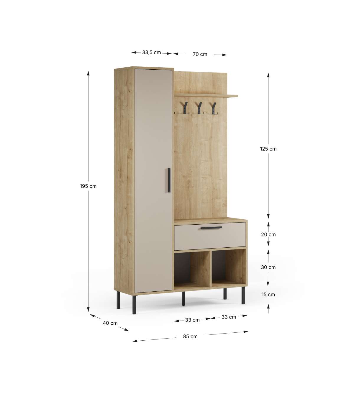 • Mueble: 79 cm (alto) x 92 cm (ancho) x 33 cm (prof.)