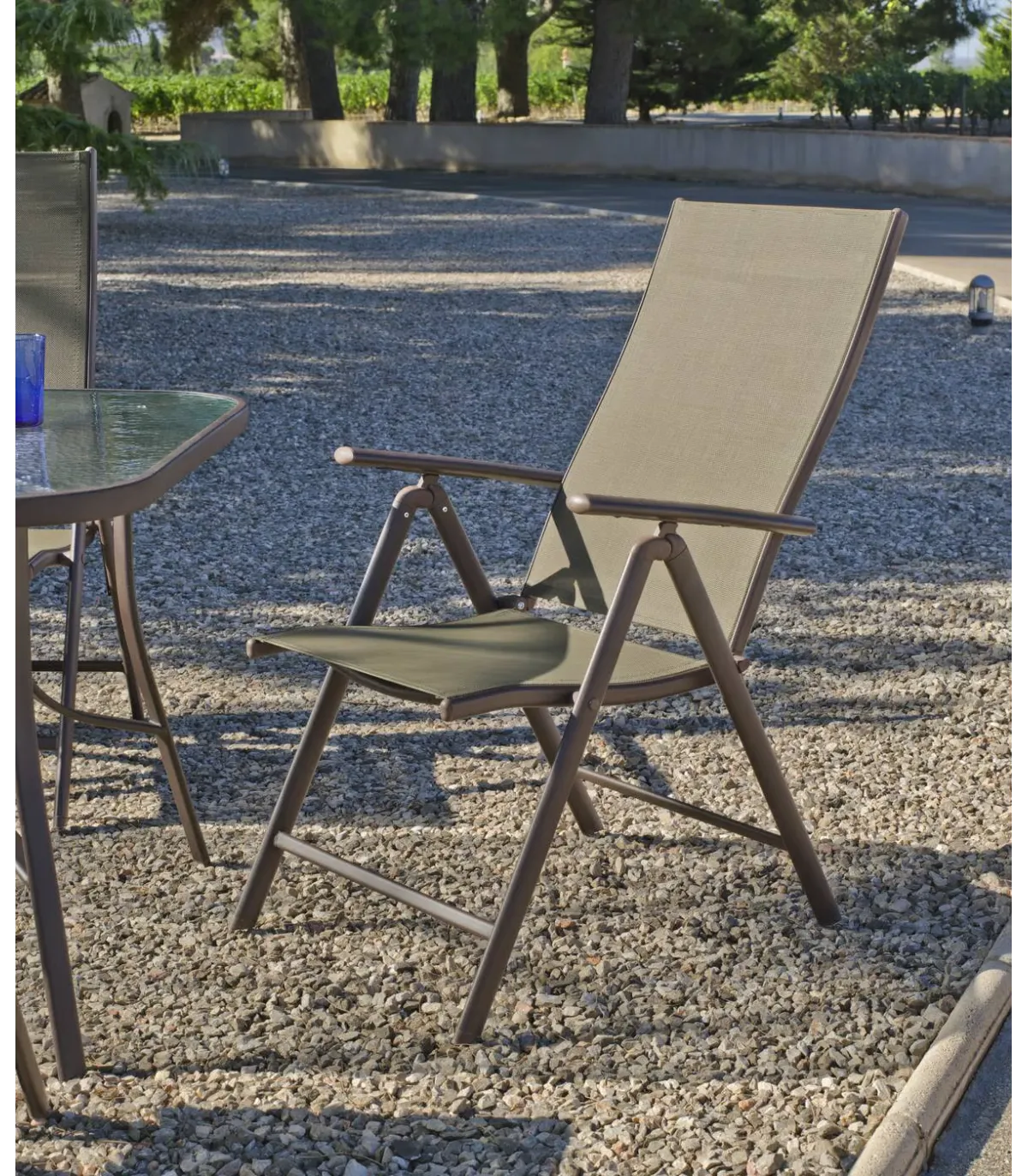 Fauteuil empilable pour jardin et terrasse, en acier inoxydable peint en couleur bronze.