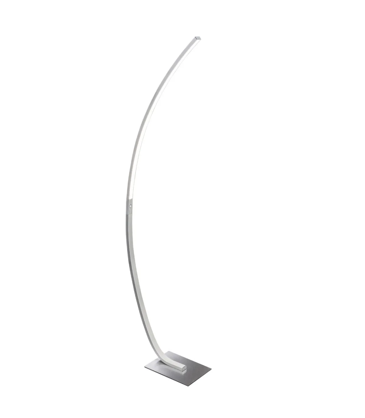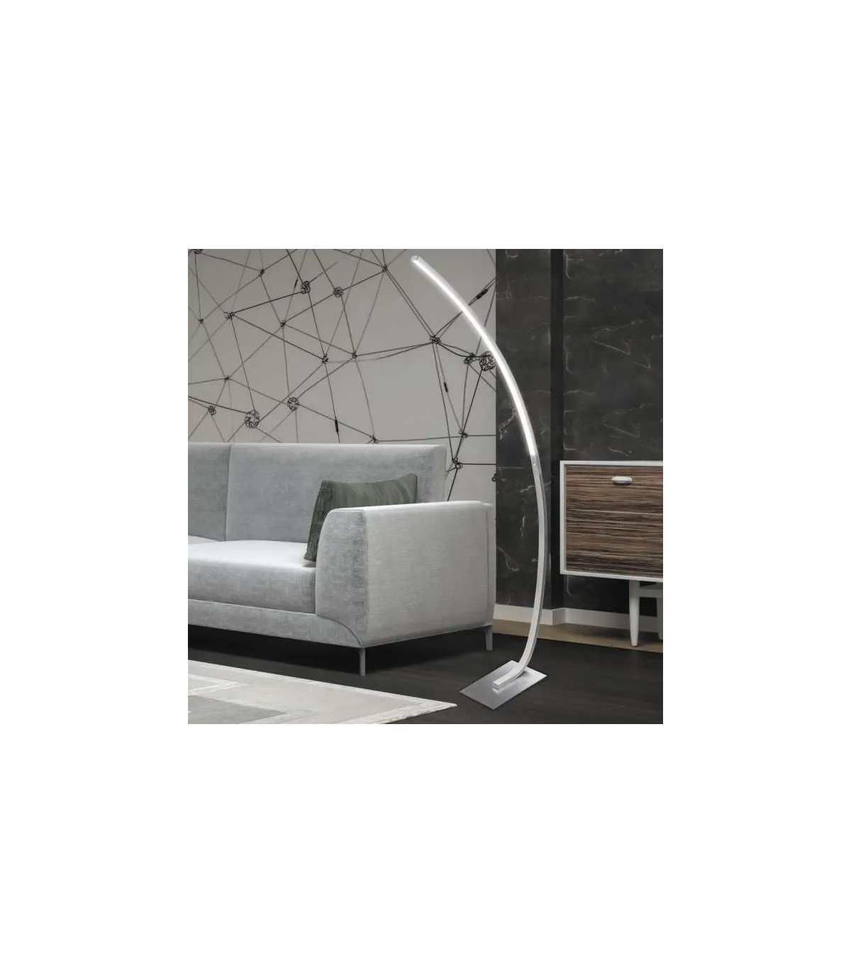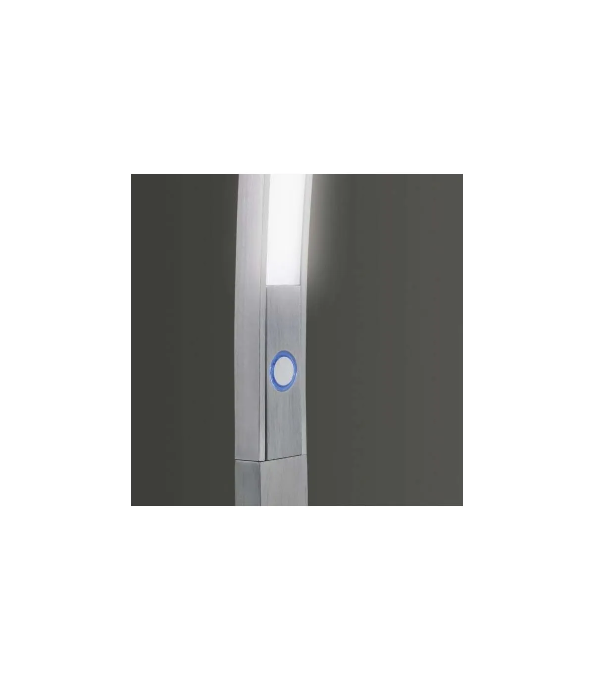 Lampadaire à led Aldo, style moderne. Structure métallique allongée et incurvée.