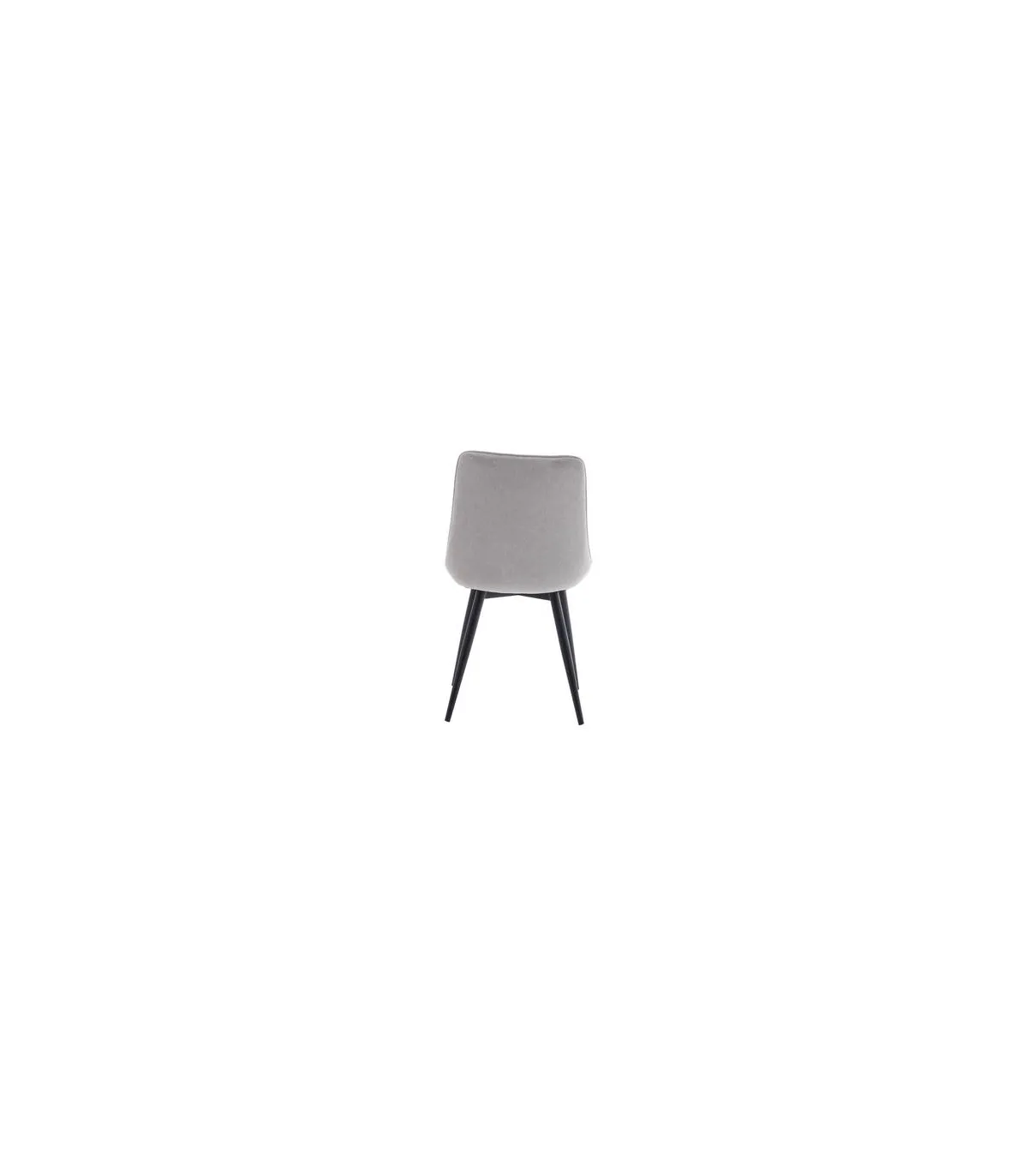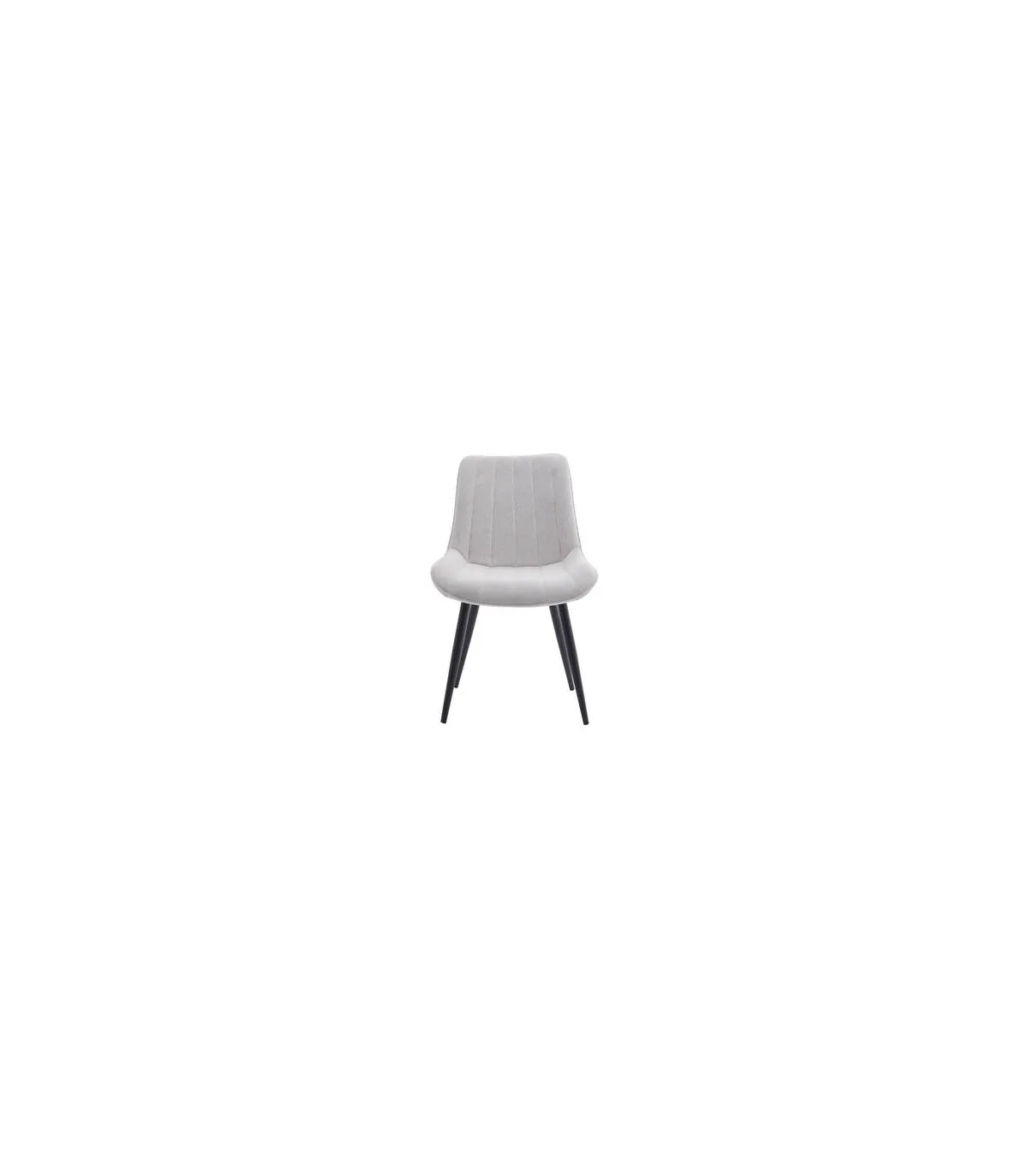Lot de 4 chaises tapissées de tissu Lido en gris ou rose pâle avec double couture horizontale sur le dossier et l'assise. Pieds en métal peint en noir.