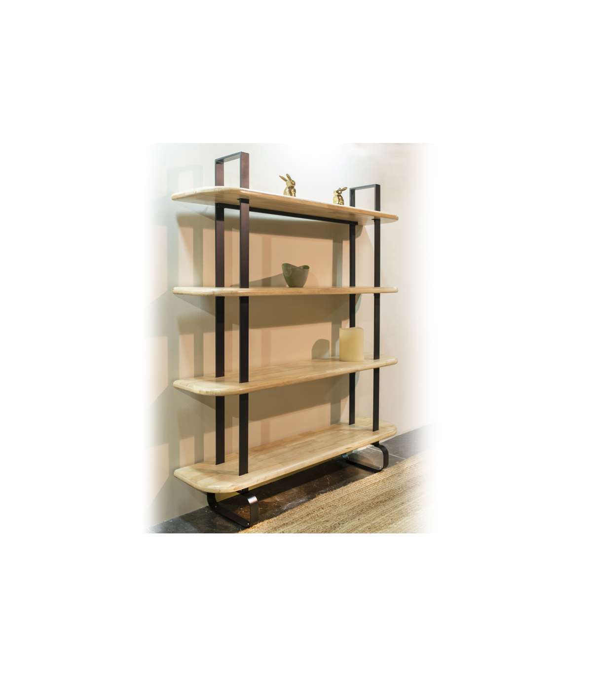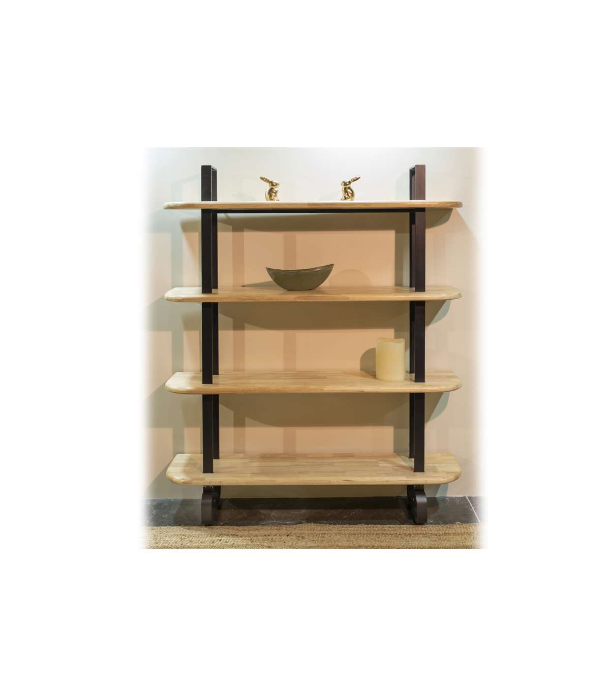 Estantería alta de 4 estantes, estructura negra  y madera  roble honey.