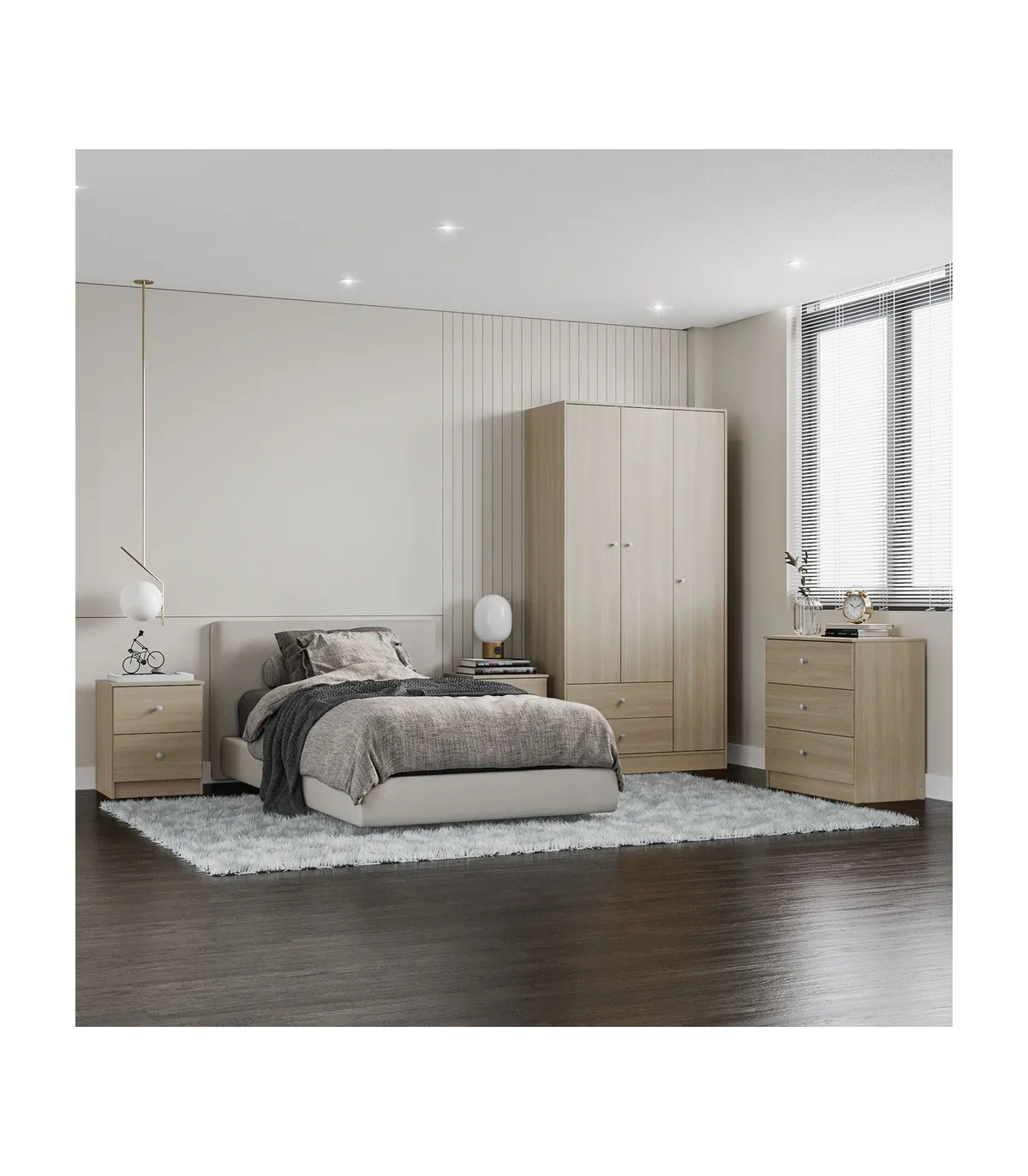 Une table basse à trois tiroirs vous offre une grande capacité dans un petit espace, parfaite à combiner avec n'importe quelle tête de lit.