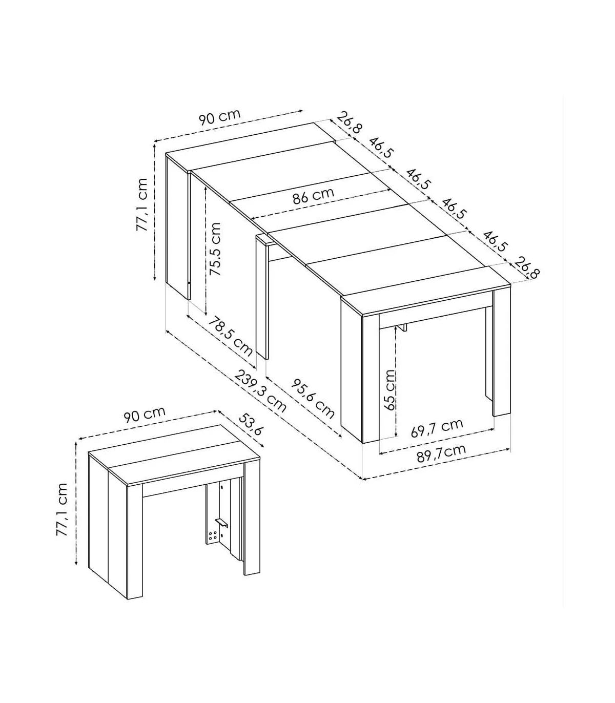 240 cm. (Ancho) x 90 cm. (Fondo) x 77 cm. (alto)