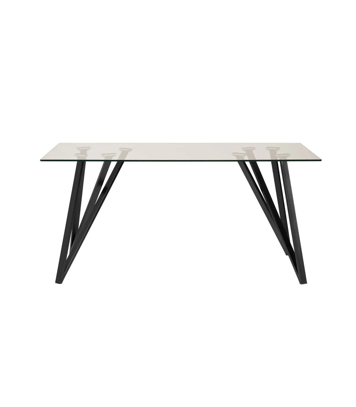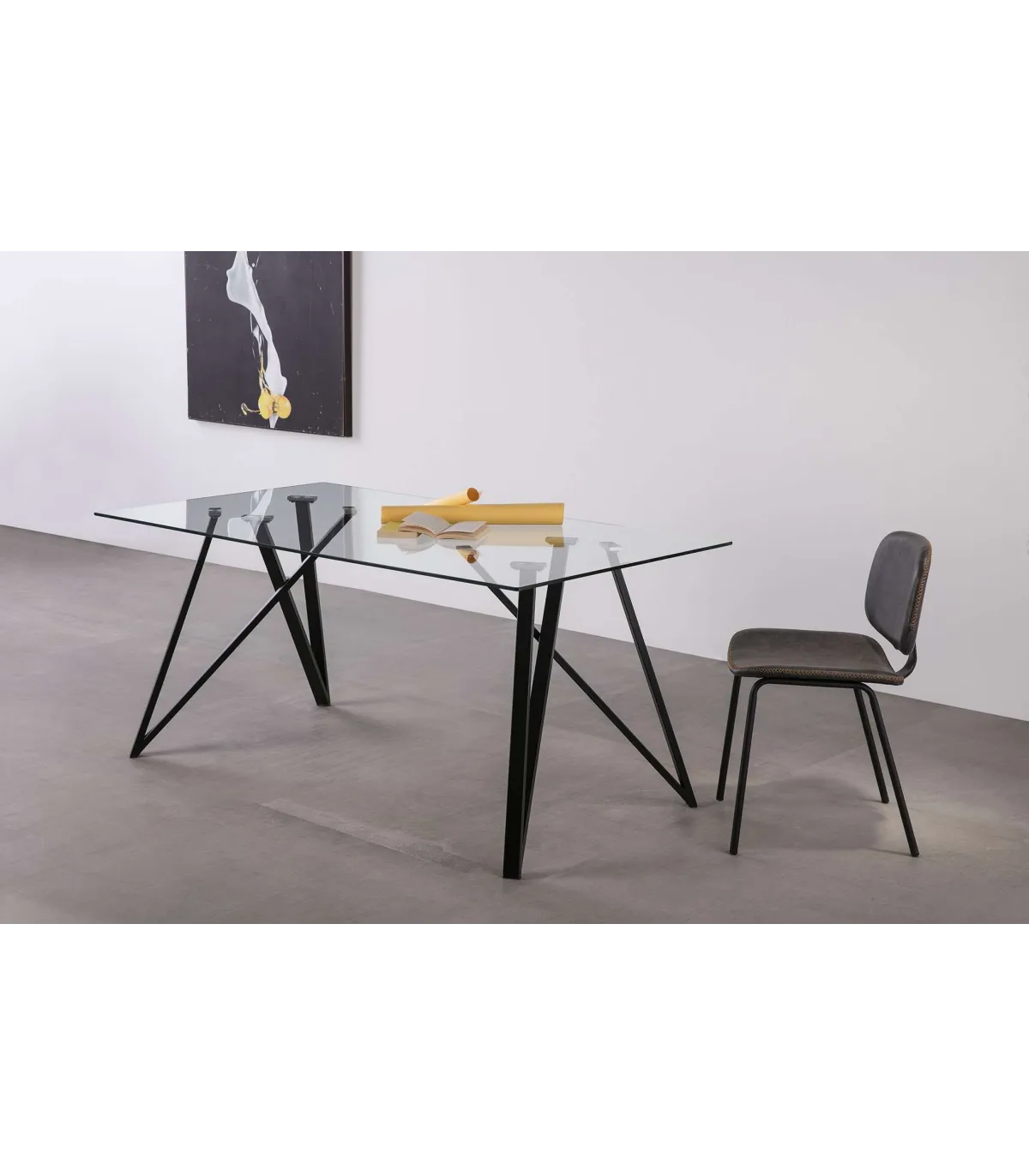Table de salle à manger rectangulaire Gaia avec plateau en verre en finition noire 76 cm(hauteur)160 cm(largeur)90 cm(longueur)