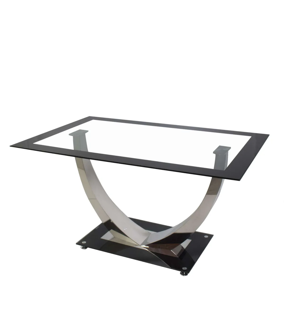 Mesa fija Md-Ubrique, tapa de cristal templado, patas en acero cromado, ideal para cocina, comedor o salones.