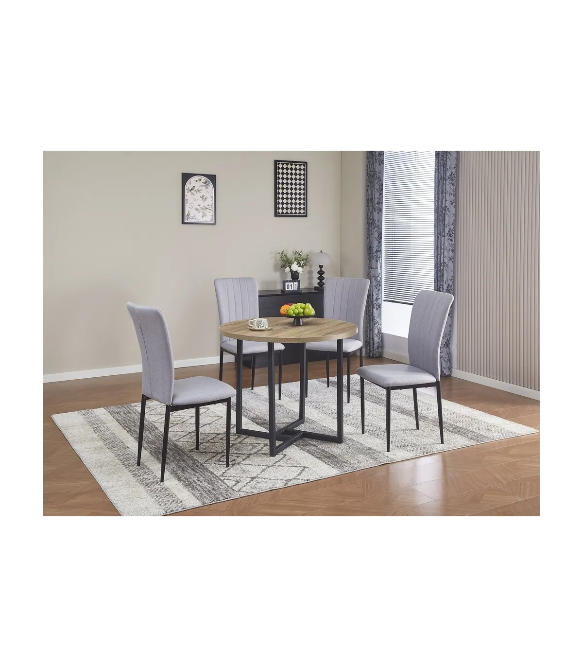 Mesa fija con tapa de cristal templado blanco, patas en acero pintado gris plata, ideal para cocina, comedor o salones.