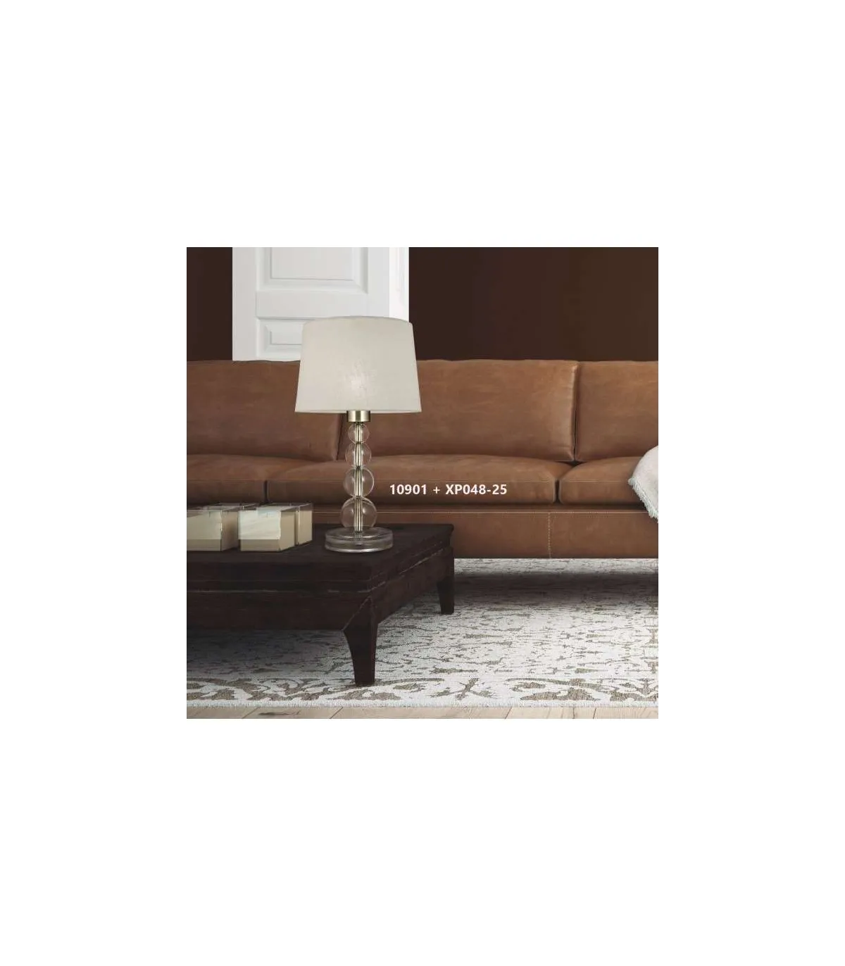 Lampe de table Versalles en finition cuir et méthacrylate sans abat-jour.