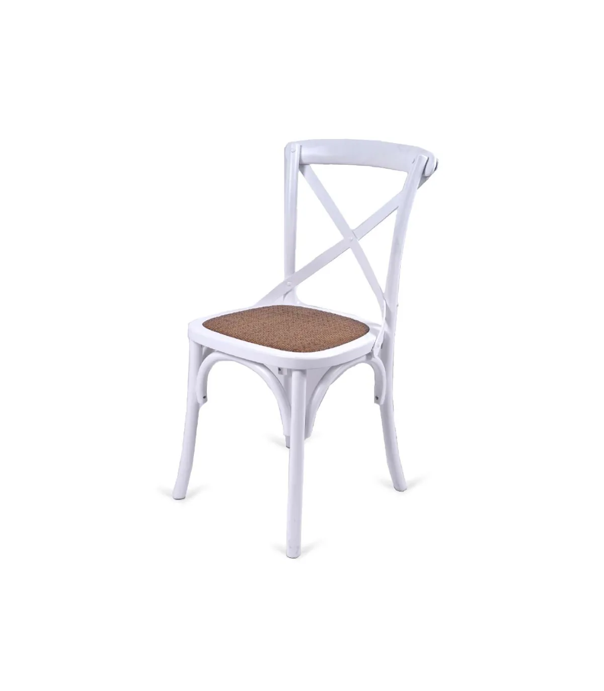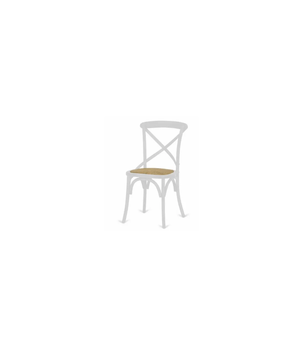 O assento de rattan natural adiciona um elemento orgânico e acolhedor para a cadeira. O ratan é conhecido por sua força e flexibilidade, tornando-se uma escolha confortável e durável para o assento. Sua textura natural e cor neutra complementam perfeitamente o acabamento branco da madeira, criando uma harmonia visualmente atraente.
