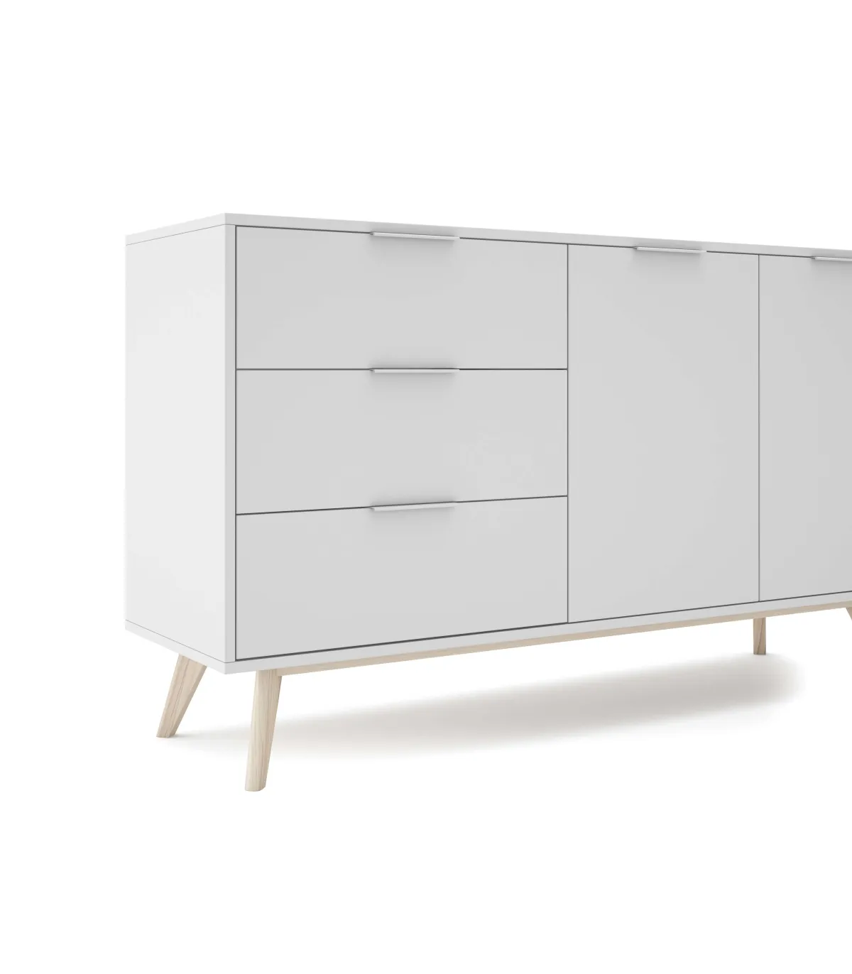 Acessórios 2 portas 3 gavetas Campos acabados de cera branca/branca 80 cm (alto) 140 cm (largura) 40 cm (largo)