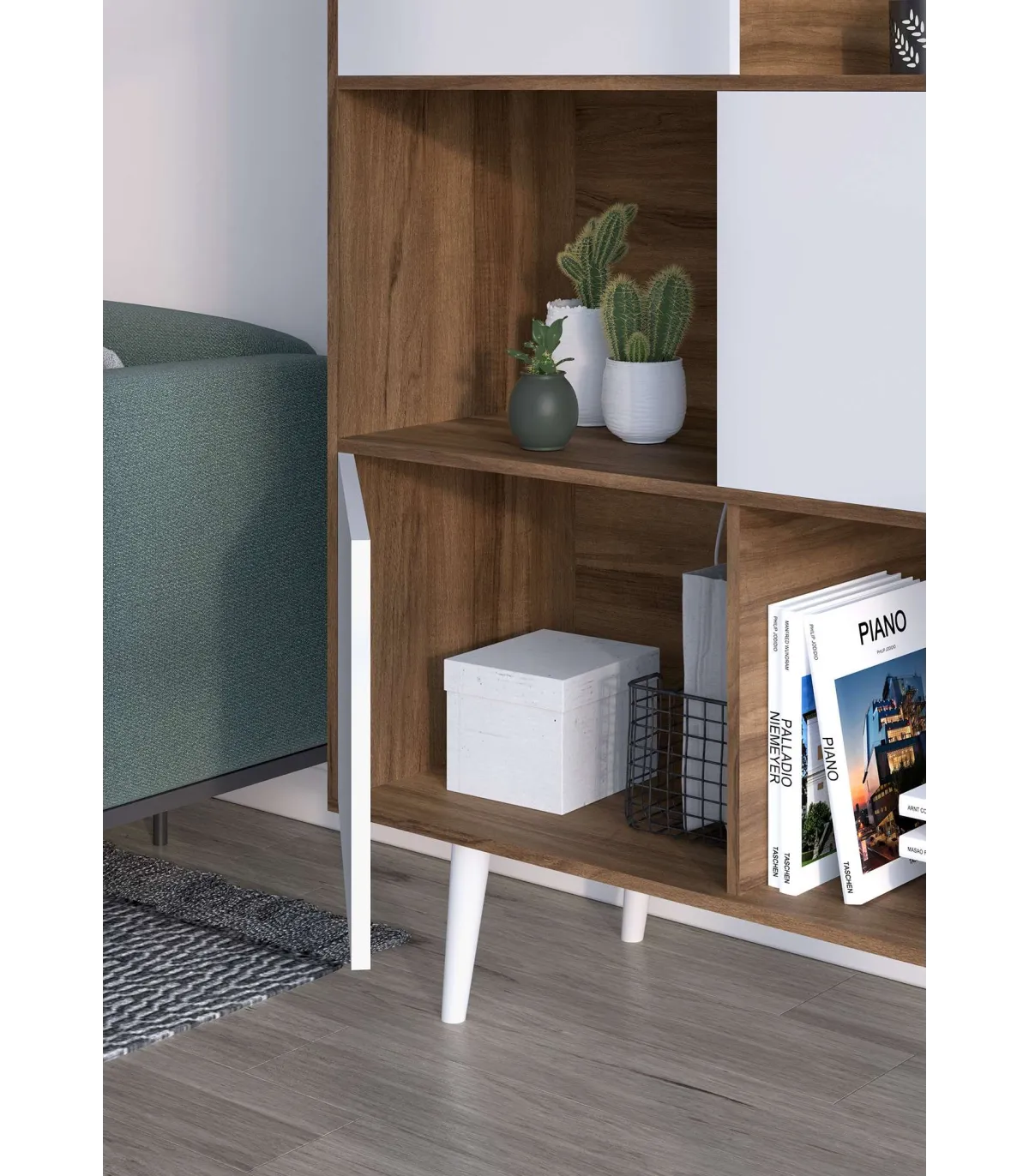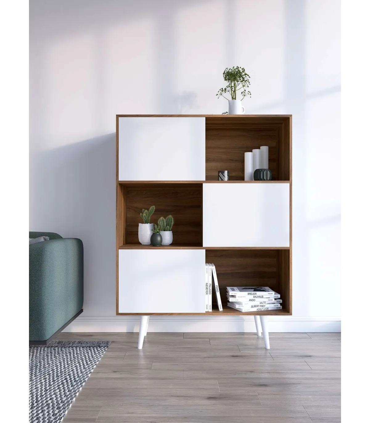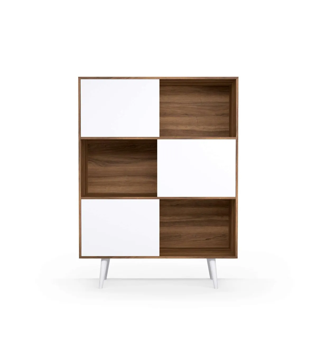 O encaixe assimétrico é um armário de armazenamento elegante com um design distinto. Tem 3 portas e 6 compartimentos, que oferece amplo espaço para organizar seus pertences. É feito de melamina de alta qualidade, um material durável e durável com um acabamento de noz combinado com branco, Suas pernas de faia sólida adicionar um toque de calor e estilo. Este jogador combina funcionalidade e estética, sendo uma adição prática e atraente a qualquer espaço.