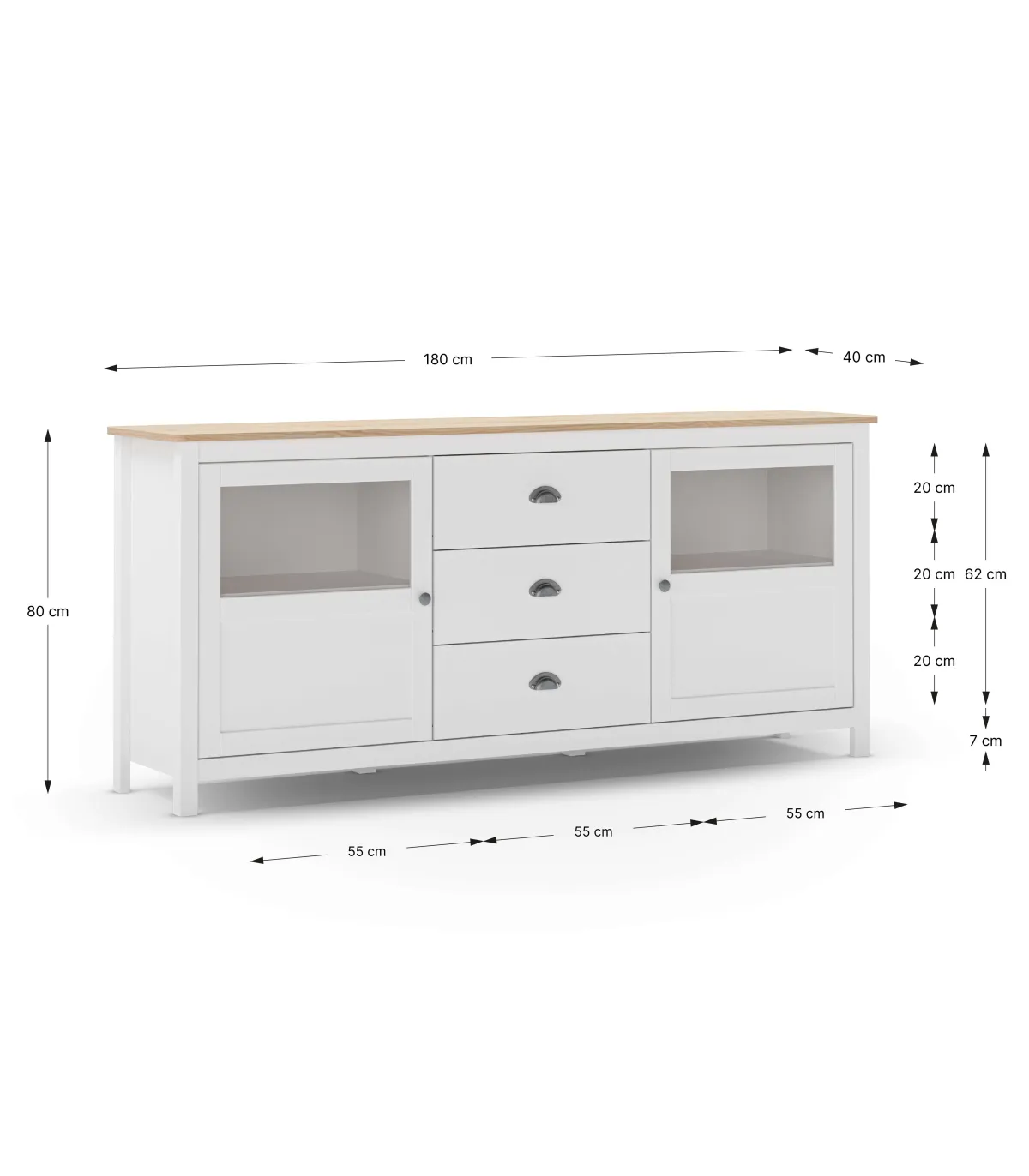 cópia de Aparador 2 portas 3 gavetas Miguel terminou em branco/roble, 80.5cm(alto) 150cm (largura) 40cm (largo)