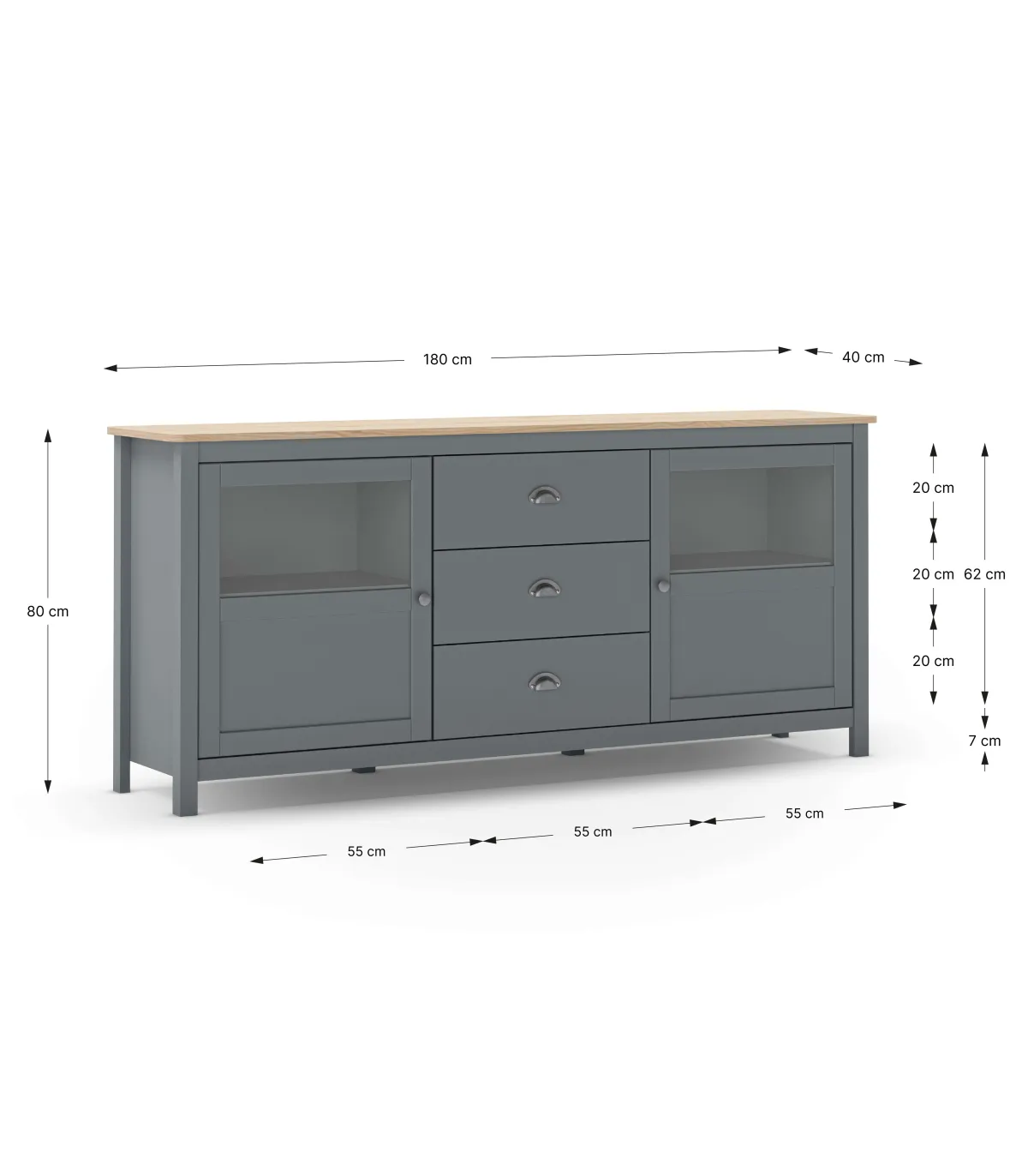cópia de Aparador 2 portas 3 gavetas Miguel-180 terminou em branco/roble, 80cm (alta) 180cm (largura) 40cm (largo)