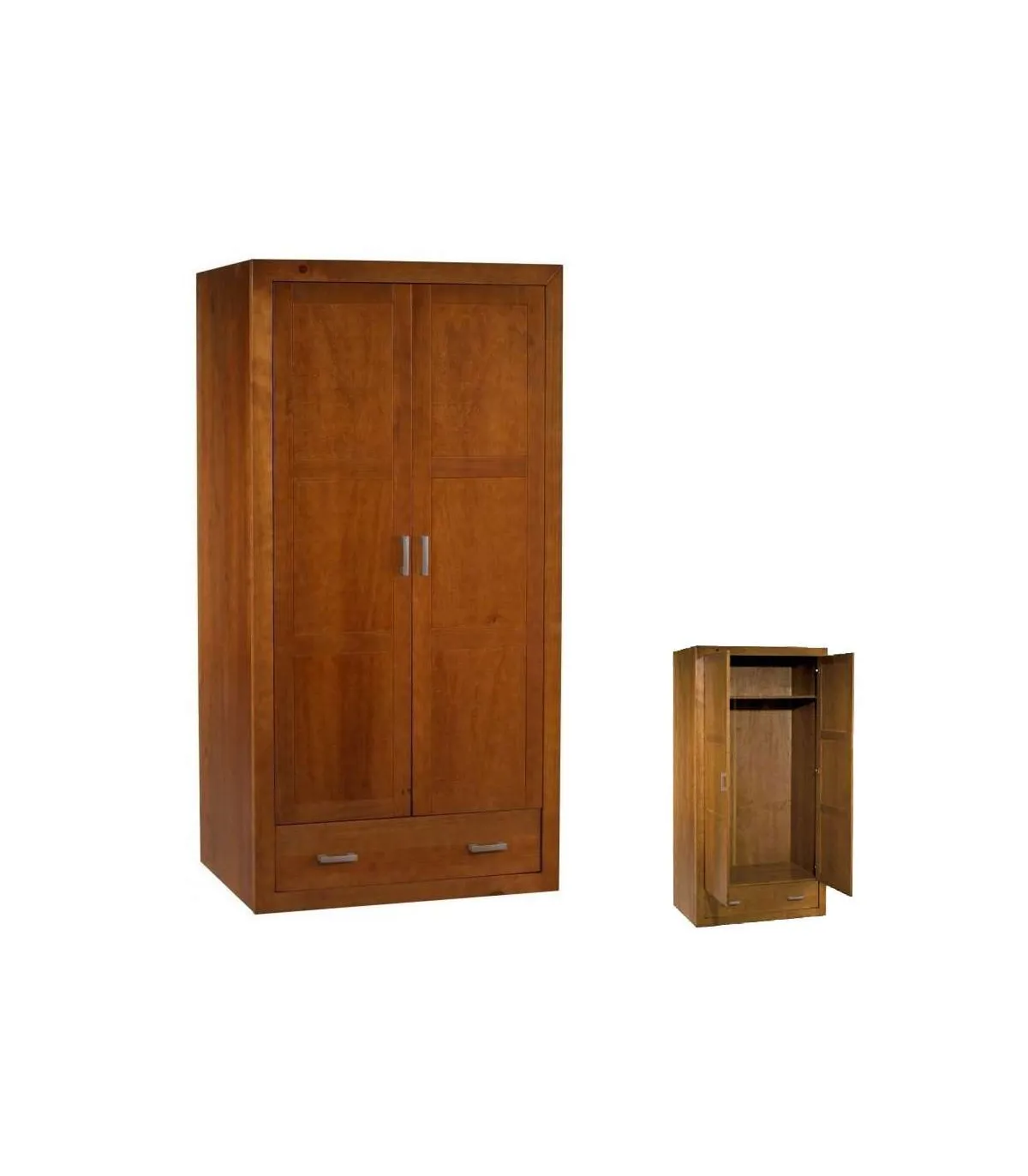 Quarto de guarda-roupa simples e prático em madeira maciça de pinheiro com linhas modernas e ao mesmo tempo um toque tradicional e sua cor no vestido de cereja qualquer quarto da casa. Material de alta qualidade em madeira de pinheiro sólido com duas portas e terminou em um verniz de cor cereja.