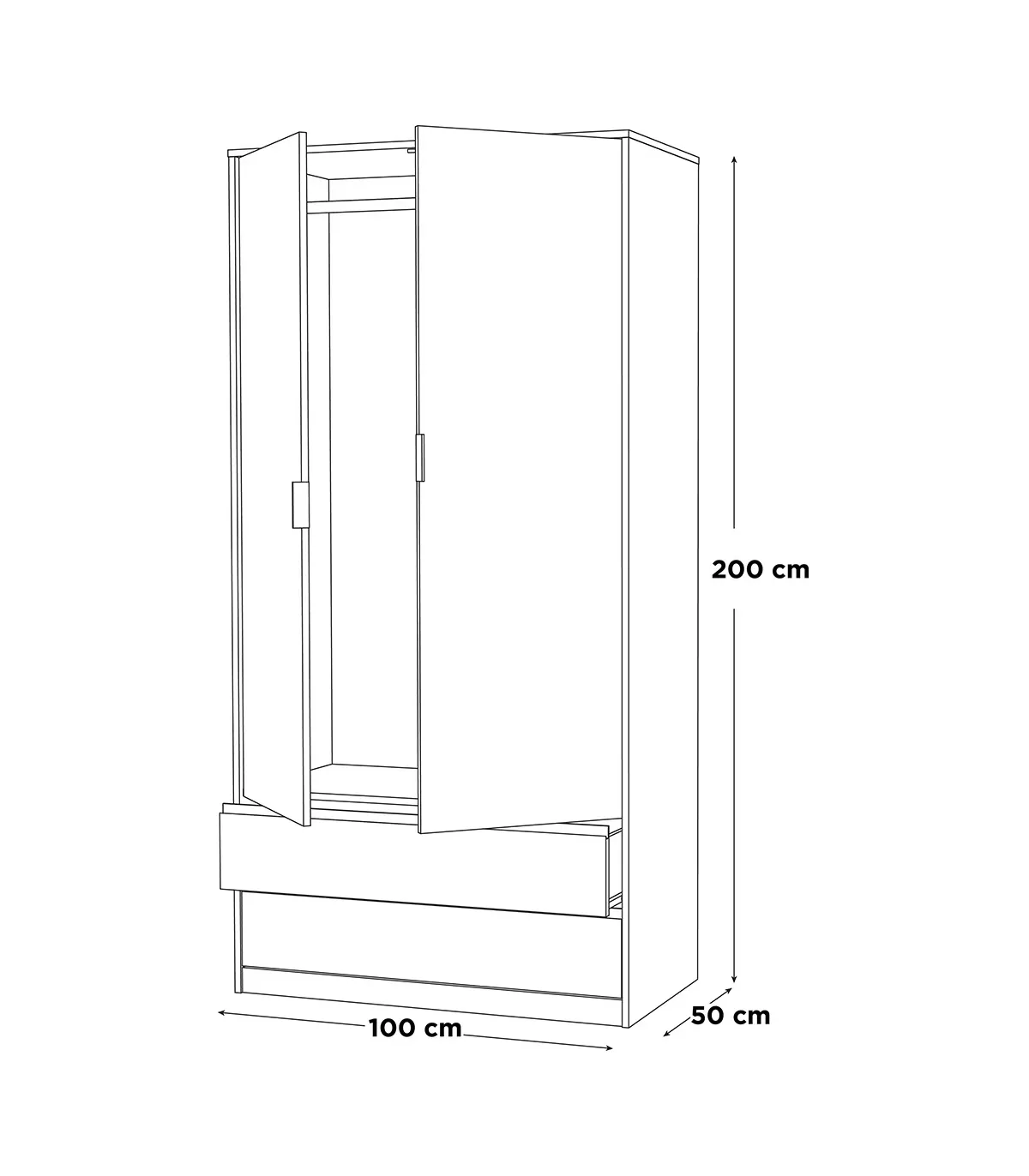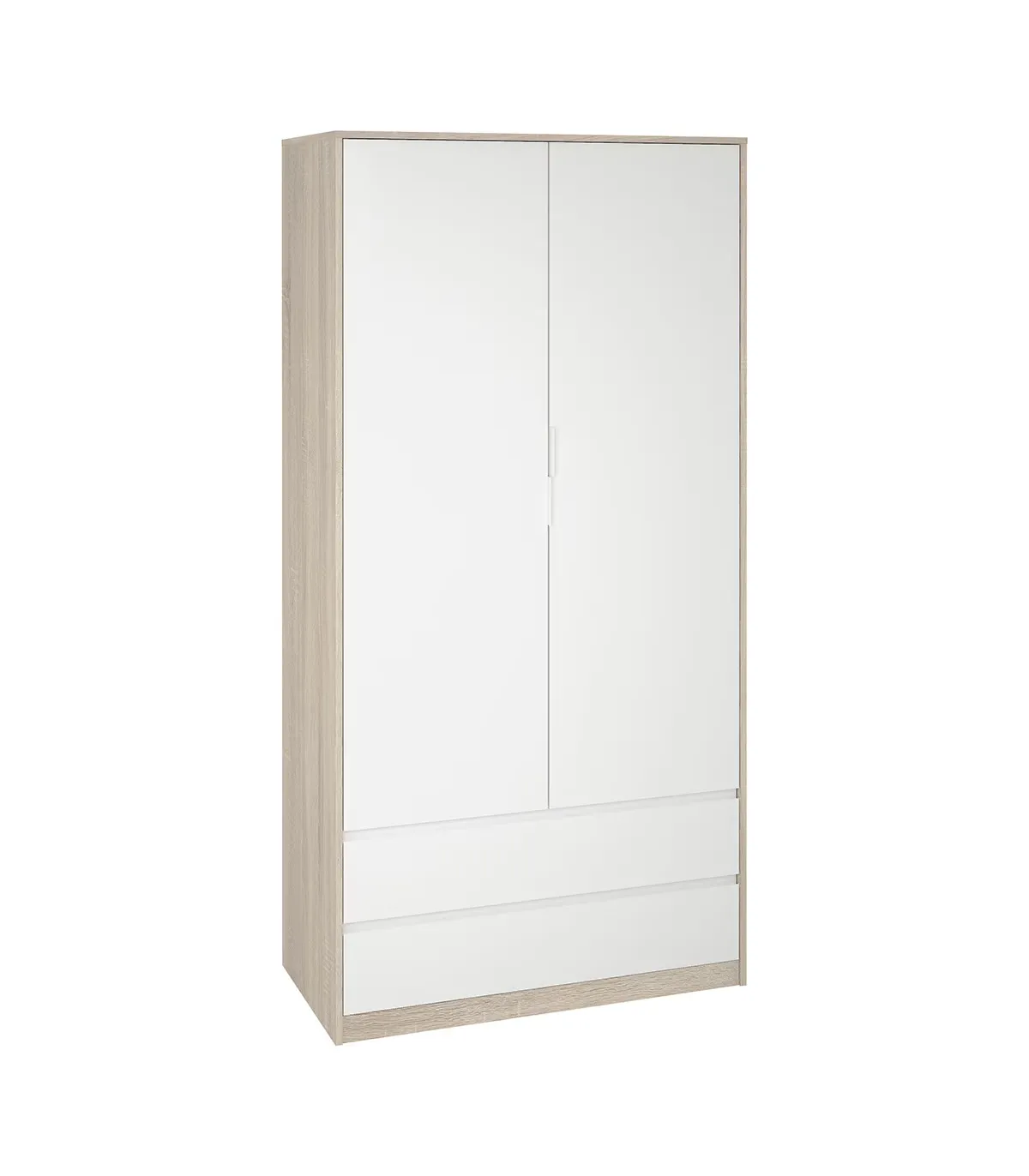 Roupeiro 2 portas 2 gavetas de dobramento terminam carvalho/branco 200 cm (alto)100 cm (largura)50 cm (back)