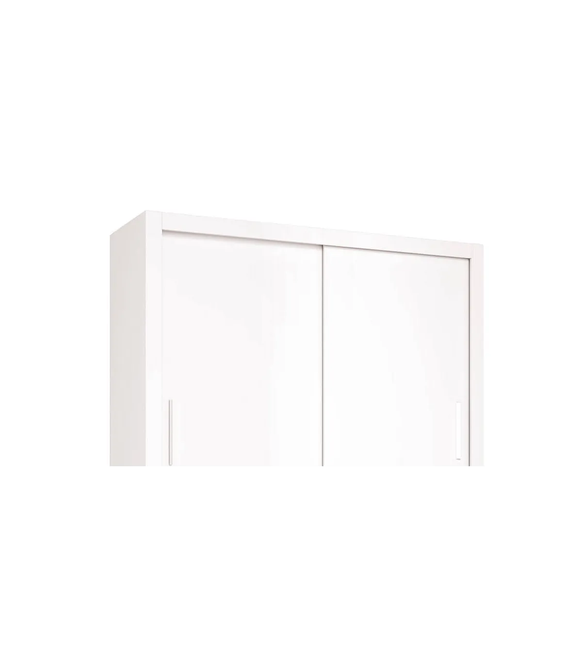 Roupeiro de duas portas de correr com um final branco elegante, ideal para quartos modernos e funcionais. Seu design limpo e seu sistema de abertura deslizante tornam perfeito para otimizar o espaço, mesmo em permanências reduzidas.