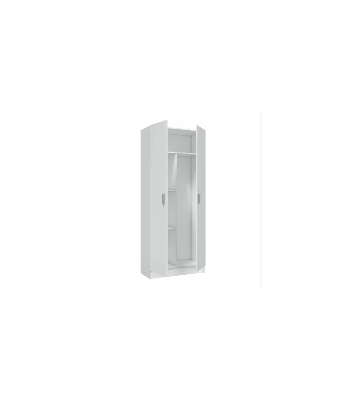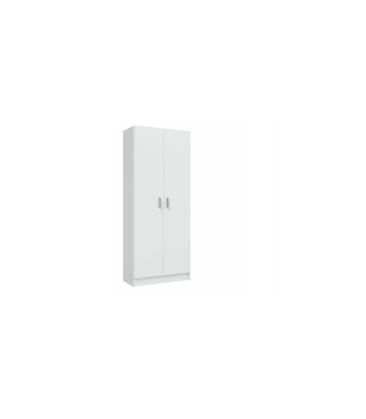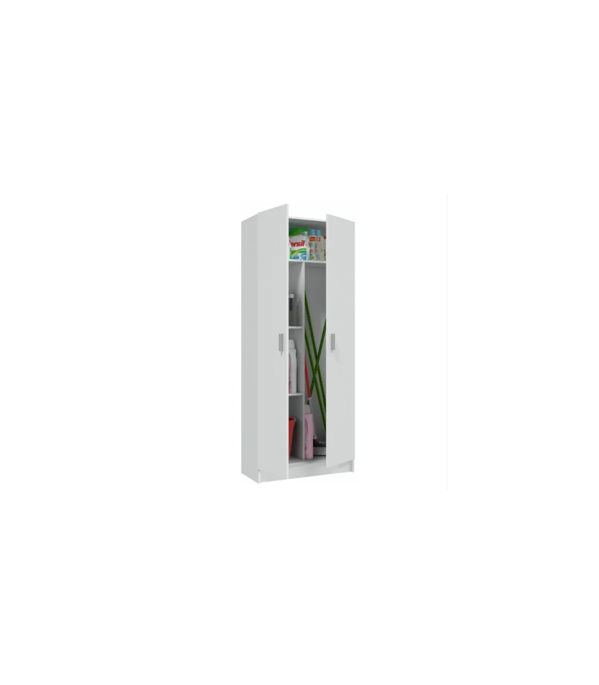 Roupeiro multiúso de 2 portas tem 3 áreas diferenciadas: uma coluna com 2 telhas ajustáveis de altura com suportes de metal (3 furos), perfeito para armazenar vários produtos e recipientes; uma coluna gratuita, ideal para acessórios de grande formato, tais como aspiradores de pó, pias, tábuas de engomar, vassouras ou pickers; e um loft na parte superior, ideal para armazenamento adicional.