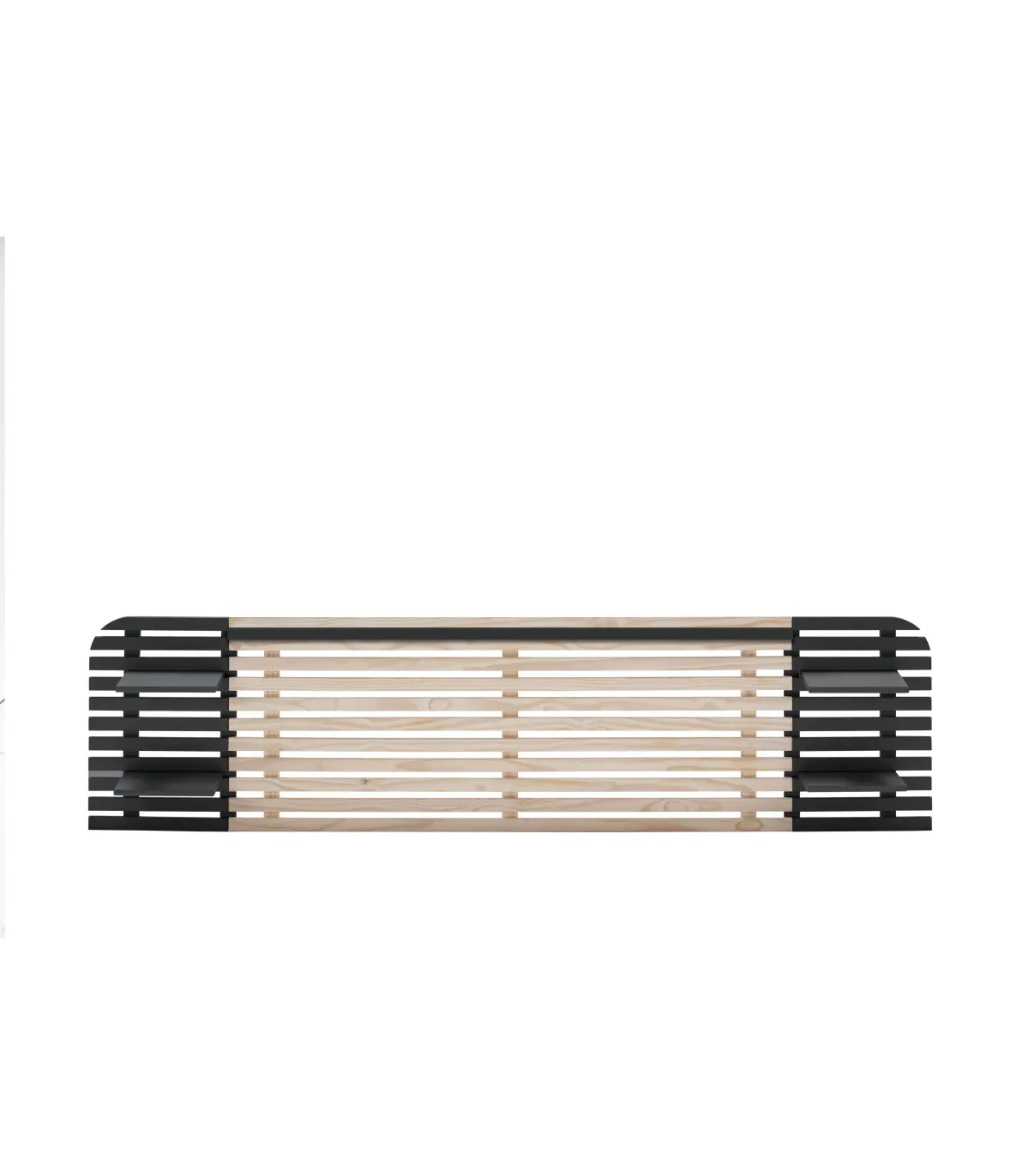 Quatro prateleiras integradas: Um dos destaques deste cabeçalho é as quatro prateleiras integradas na cera preta. Estas prateleiras fornecem espaço adicional para colocar livros, decorações ou objetos pessoais, que adiciona funcionalidade ao design.