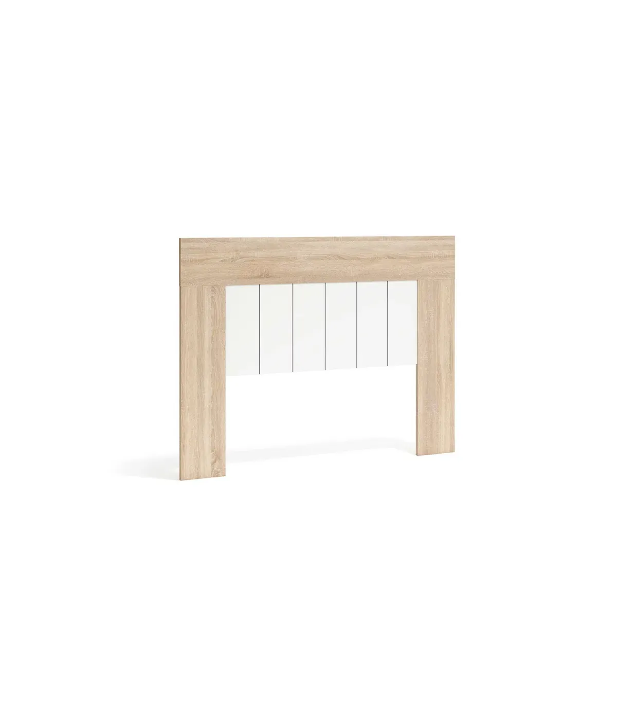 O modelo de cabeçalho de cama de casal Delicias é feito de folha sintética feita de carvalho cambiano e branco. Este material é muito resistente a choques e é limpo muito facilmente. Seu design é baseado no estilo nórdico onde a luz e móveis alegres que dão ao quarto muita clareza prevalecem e nos oferecem uma sensação de ordem e limpeza ao mesmo tempo.