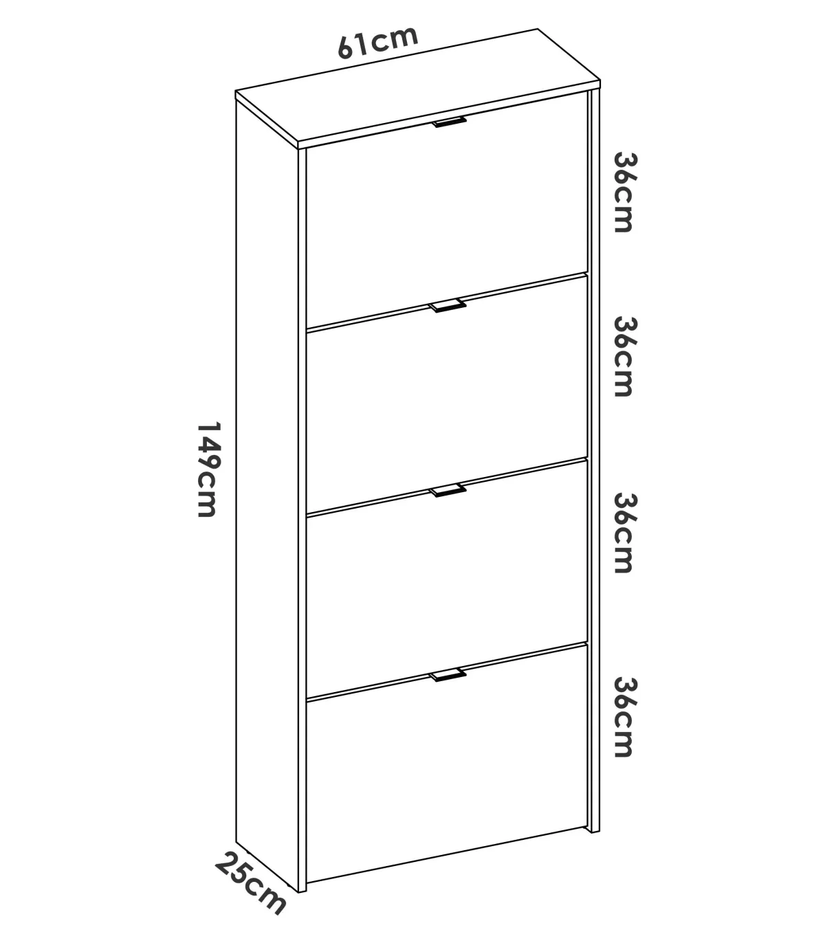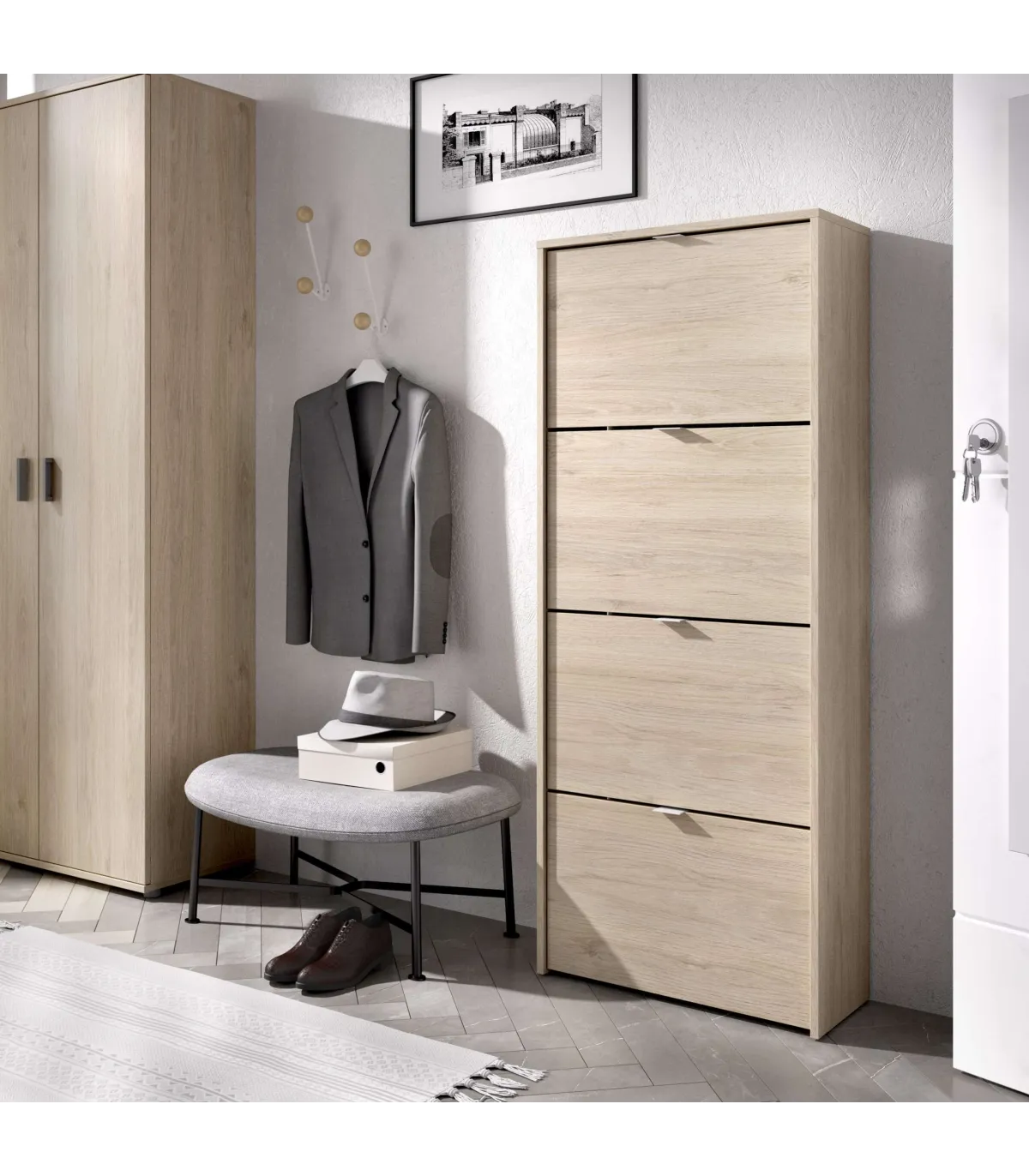 Feito de madeira fabricada e um acabamento natural, este sapateiro é a combinação perfeita de funcionalidade e estilo. Suas quatro portas dobrável oferecem um grande espaço de armazenamento para quatro pares de sapatos cada, para um total de 16 pares de sapatos, todos em um mobiliário compacto de 149cm de altura x 61cm de largura x 25cm de fundo.