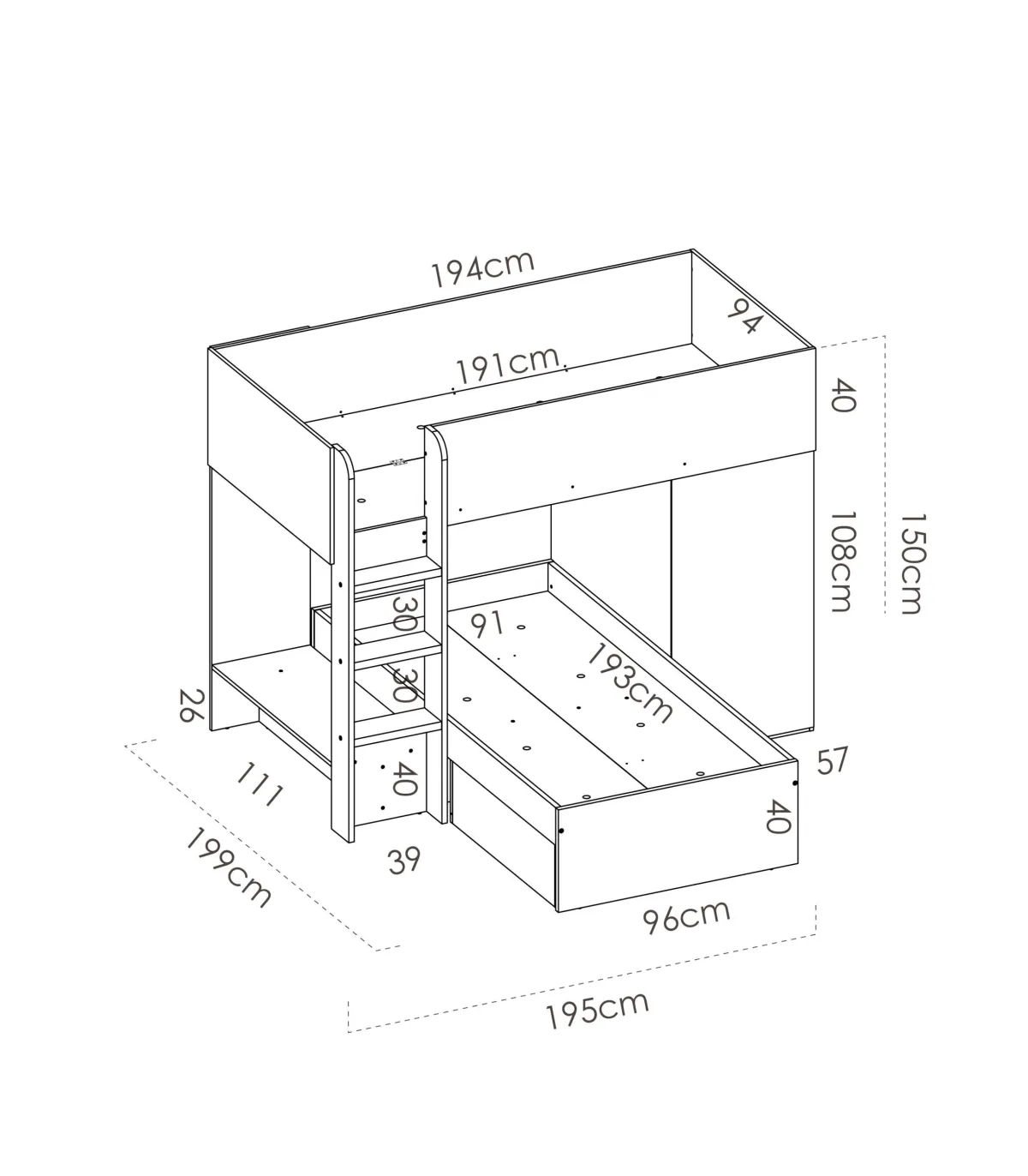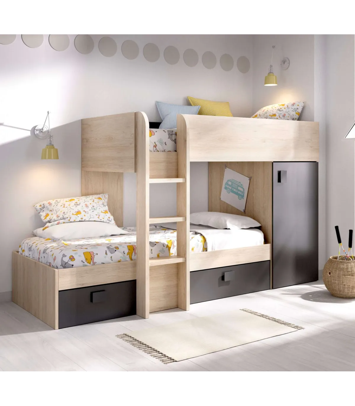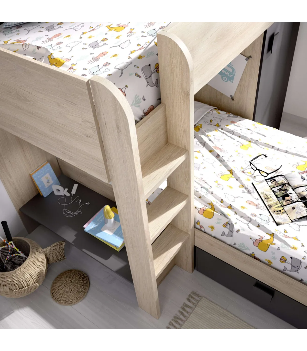 Baeza cama de trem montagem reversível em natural-enxerto 150 cm (alta) 255 cm (largura) 110 cm (largo)