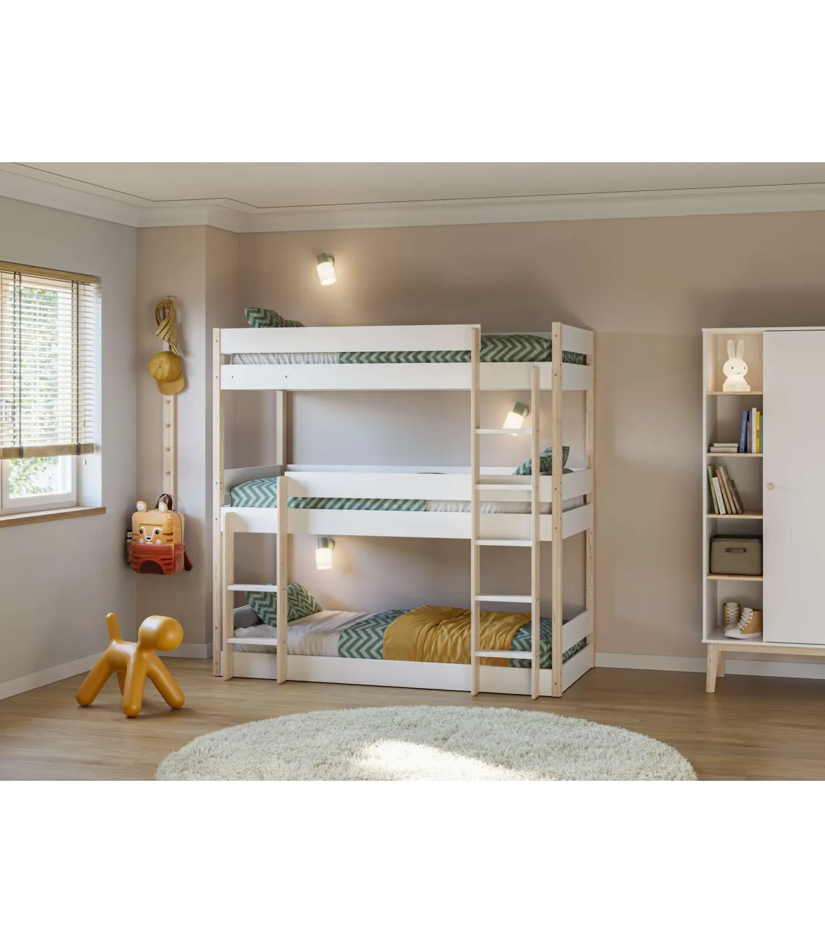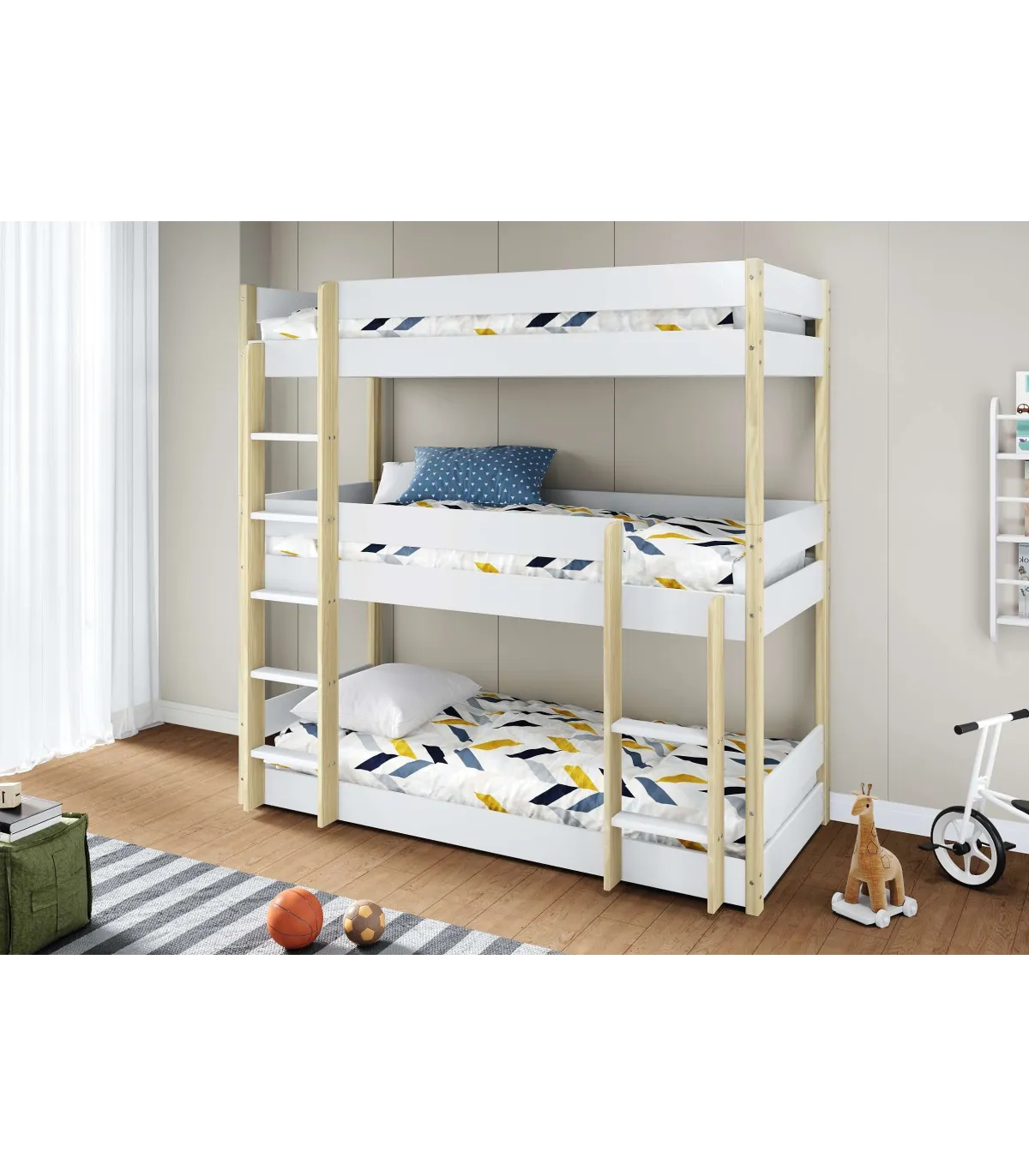 Cama de juventude em estilo moderno. Feito de madeira de pinho em forma de ripas rectas com acabamento em cinzento antracite ou cinzento claro combinado com o natural que lhe confere um design moderno e casual, ideal para quartos de dormir para jovens.