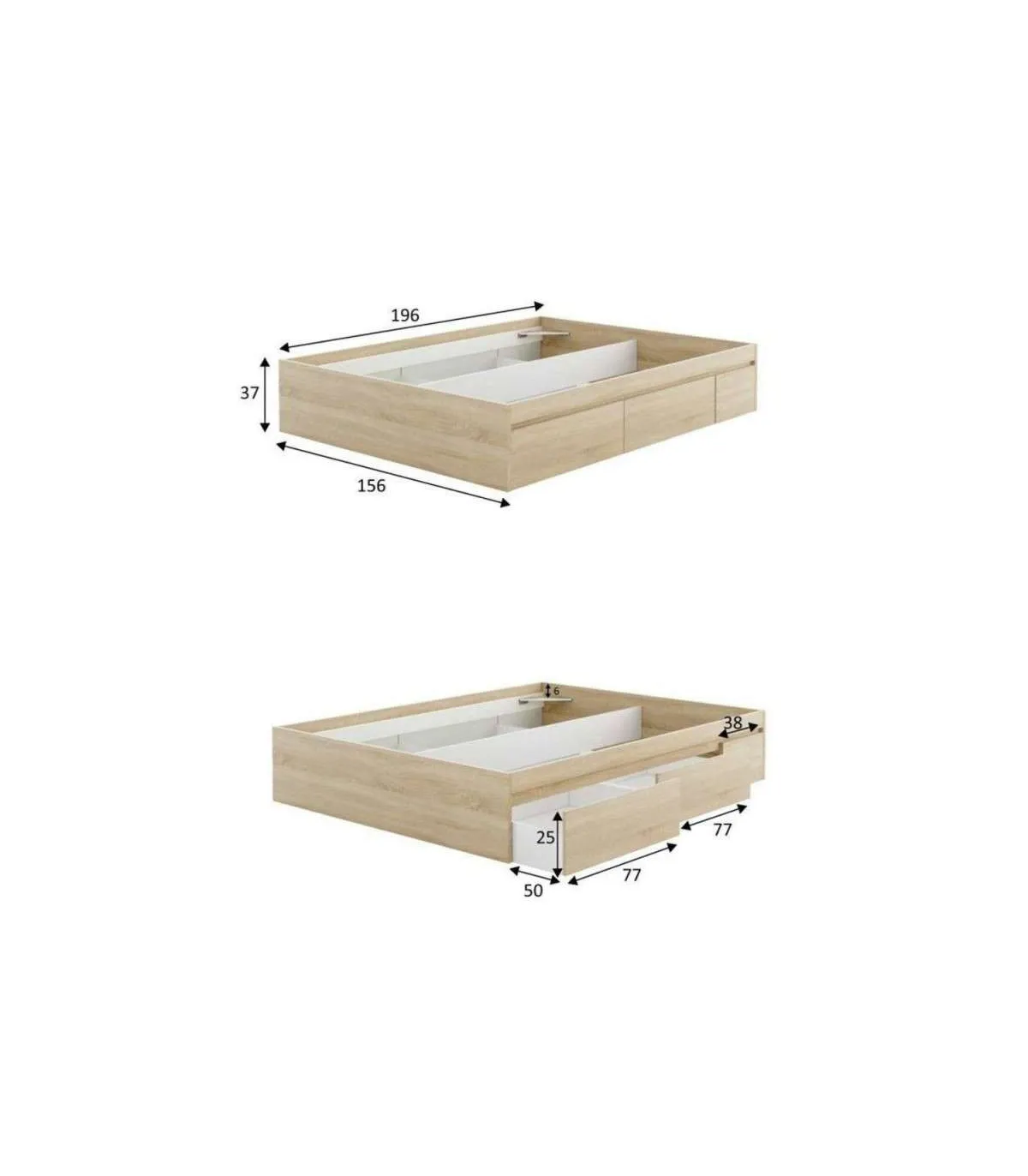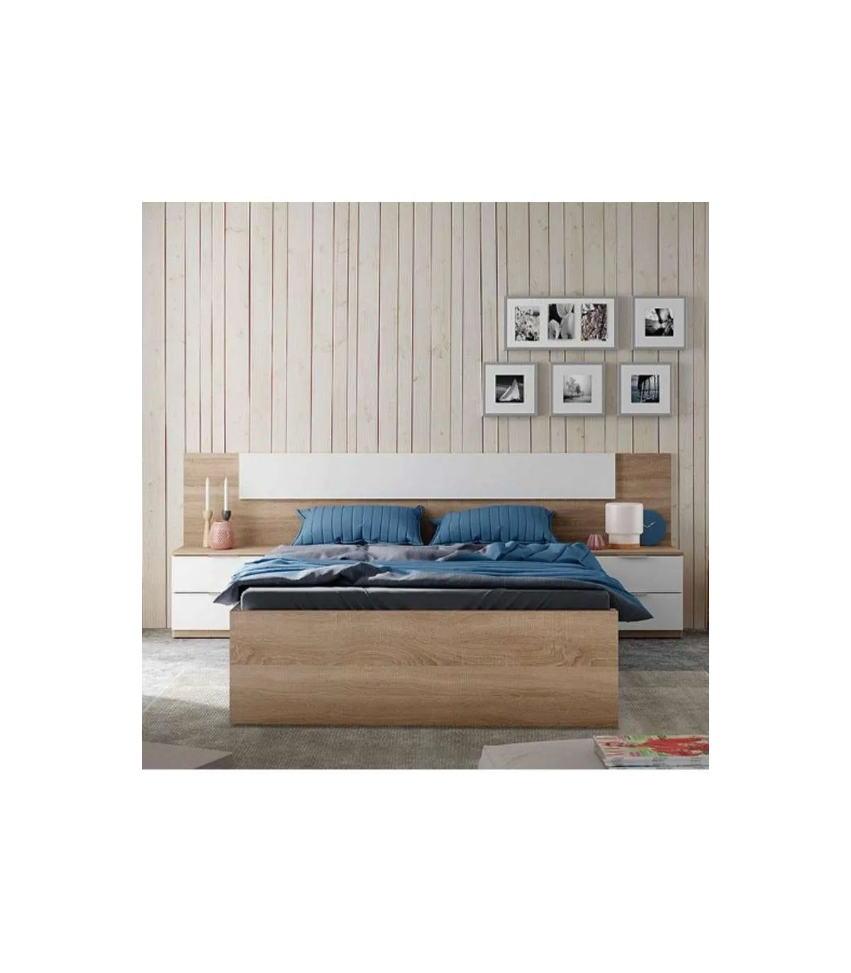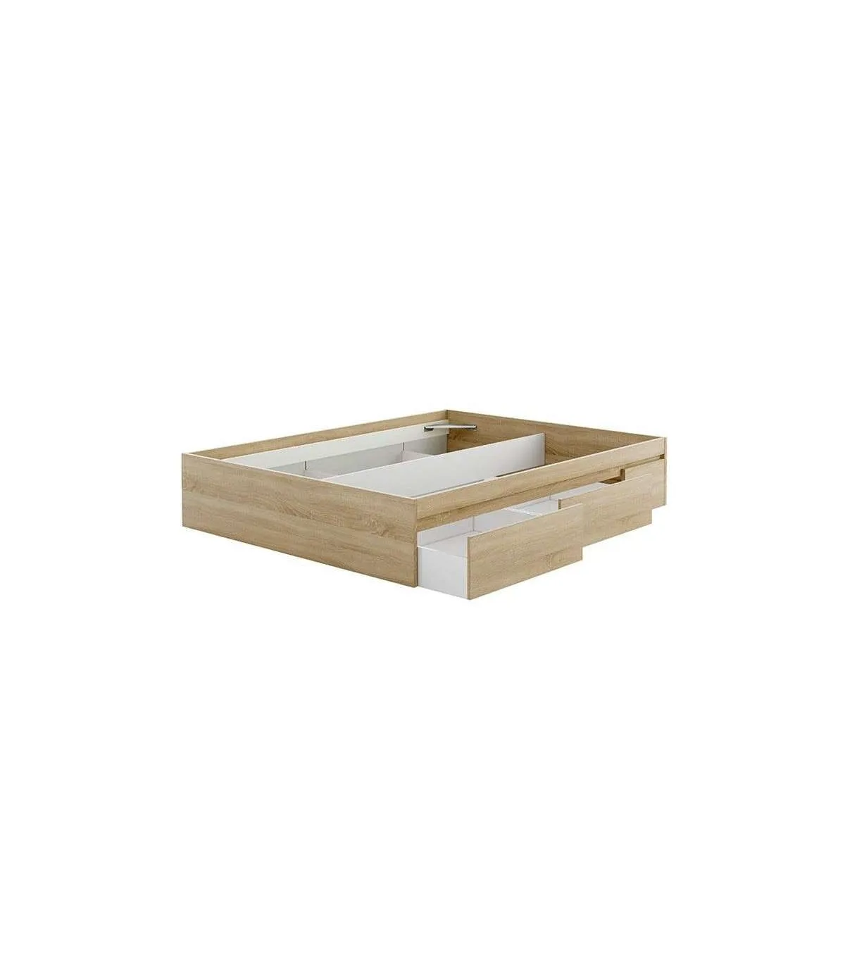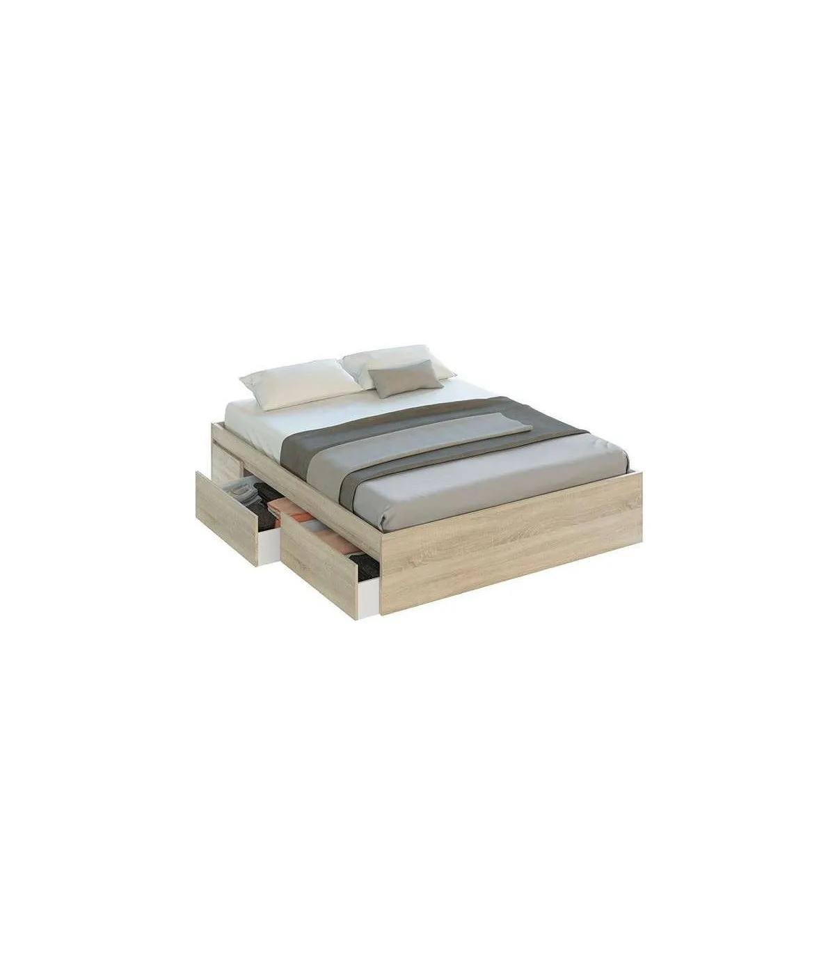Cama de casal Modelo Beli com 4 gavetas de carvalho canadiano. Para colchão 150x190 cm.
