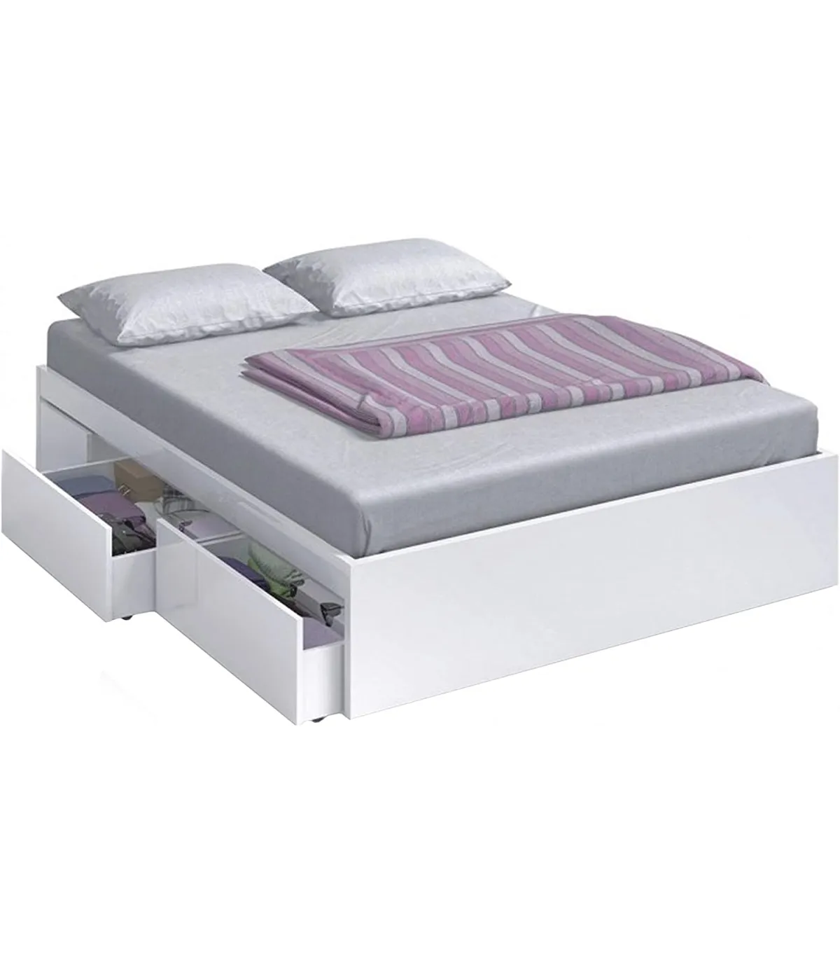 Cama para colchões 150x190 com 4 gavetas na parte inferior para armazenamento.
