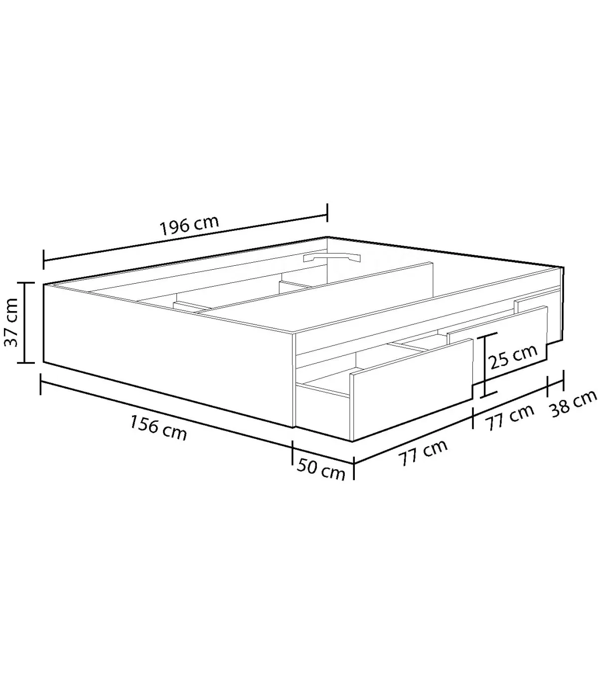 Cama de Kendra para colchão 150x190 com 4 gavetas 37 cm (alta)156 cm (largura)196 cm (largo)