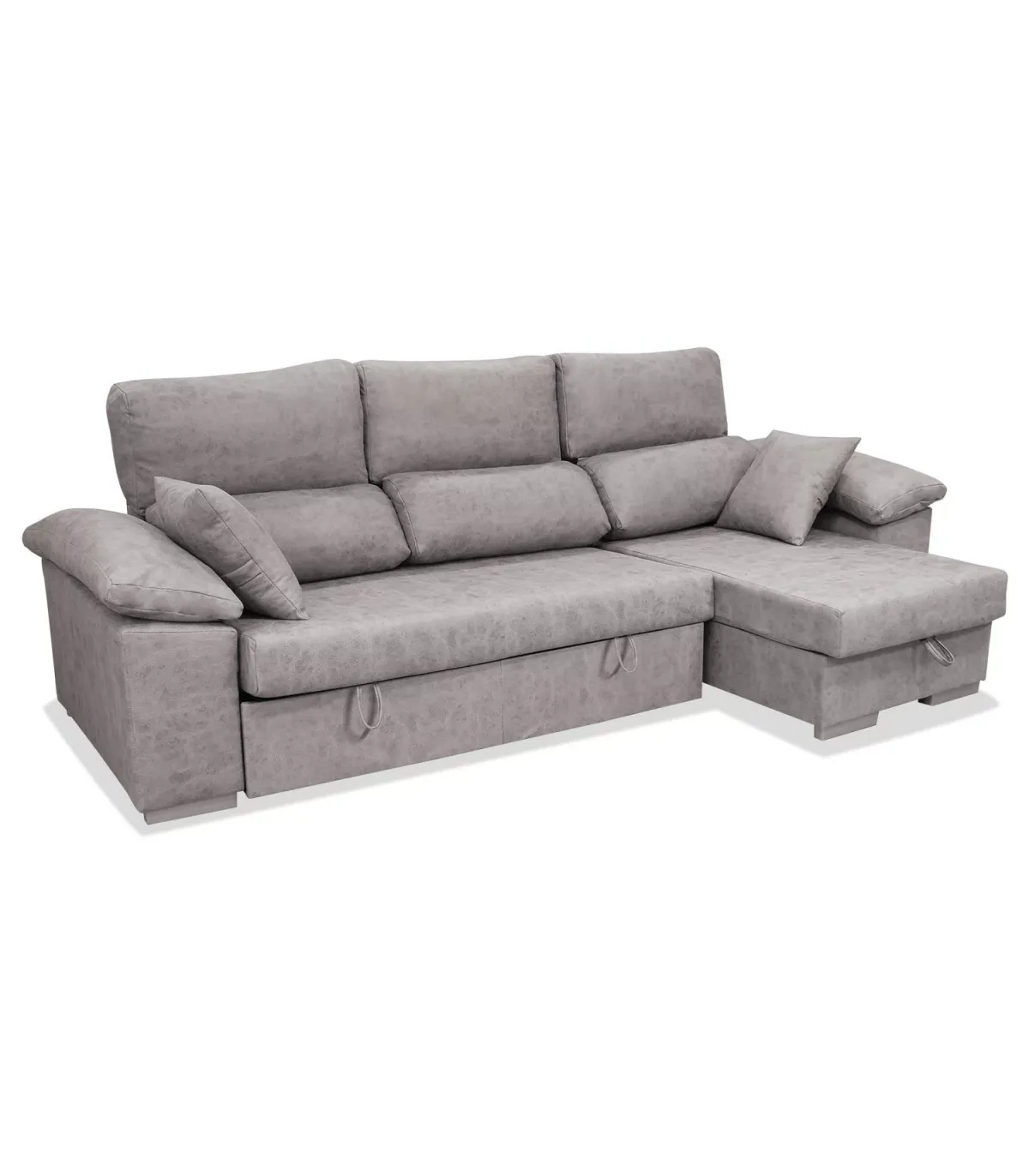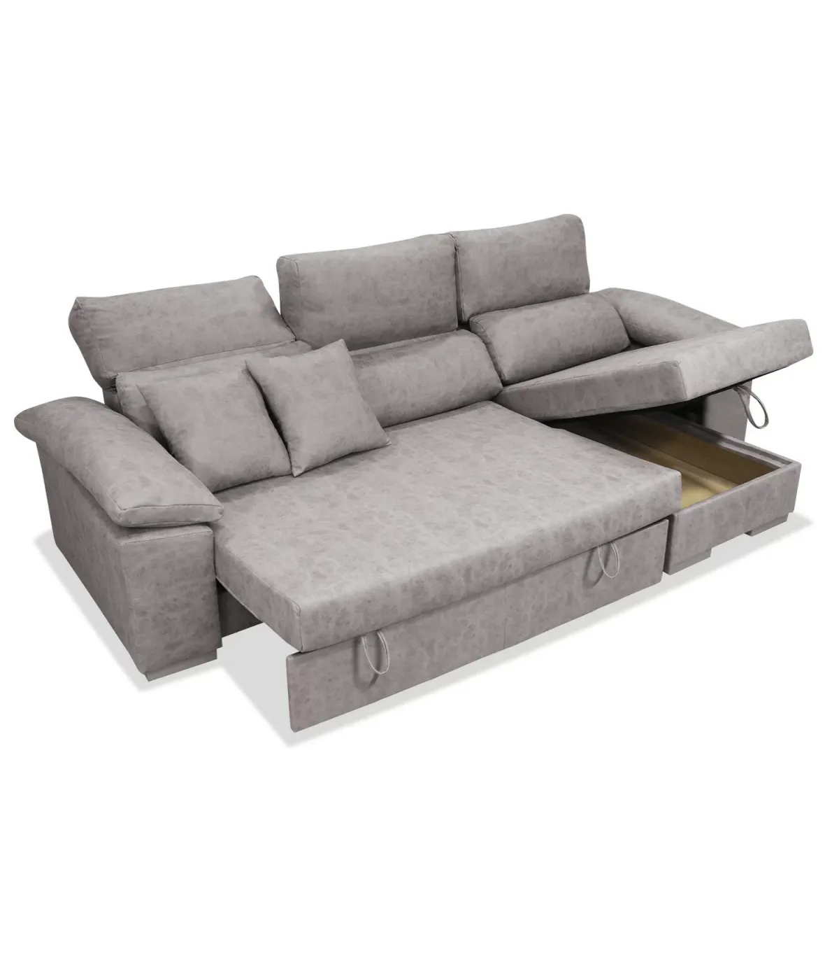 Sofá chaise longue bed de frente para a direita com arcon dobrável no chaiselongue e relining encosto. Uma boa opção para aqueles que procuram um sofá de entrega confortável, acessível e rápido. Almofadas decorativas não incluídas.