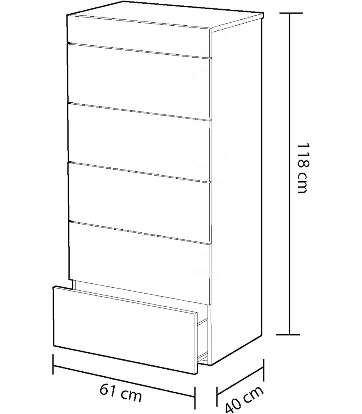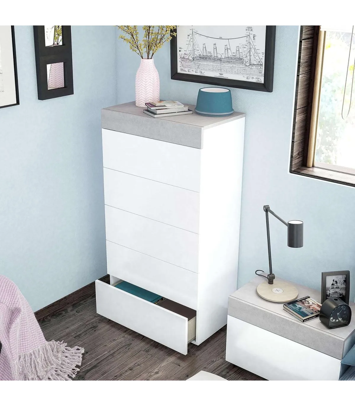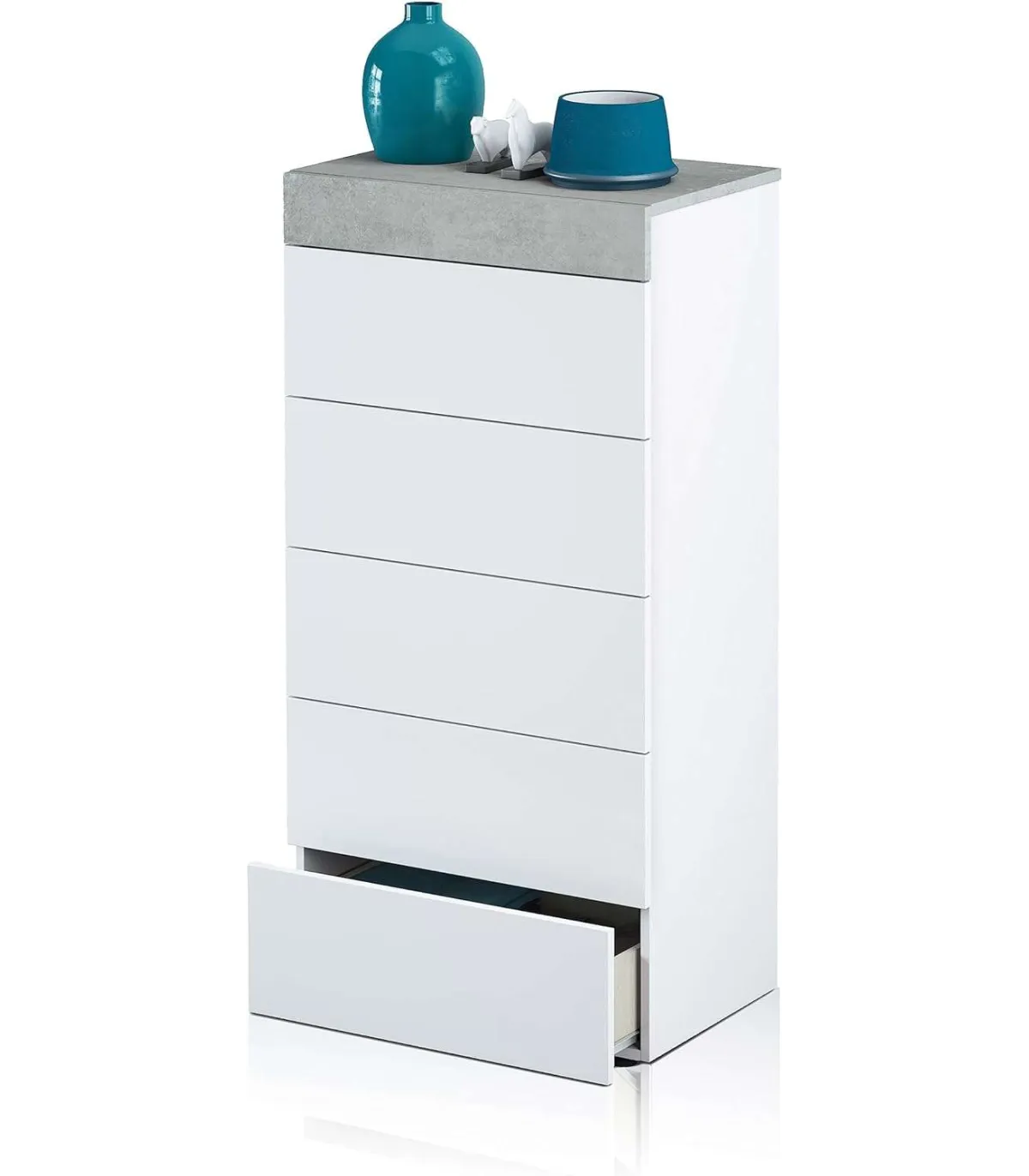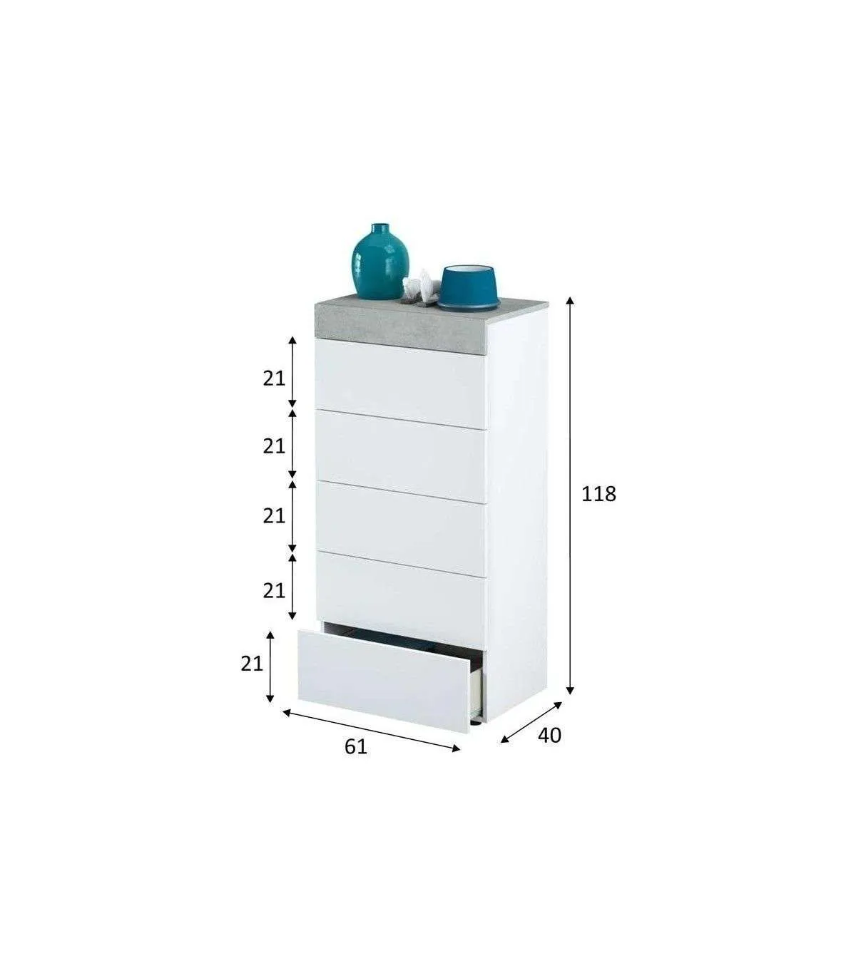 Sinfonier 5 gavetas Modelo Tempo em branco artik/cemento. 118cm (alta) 61cm (largura) 40cm (floor)
