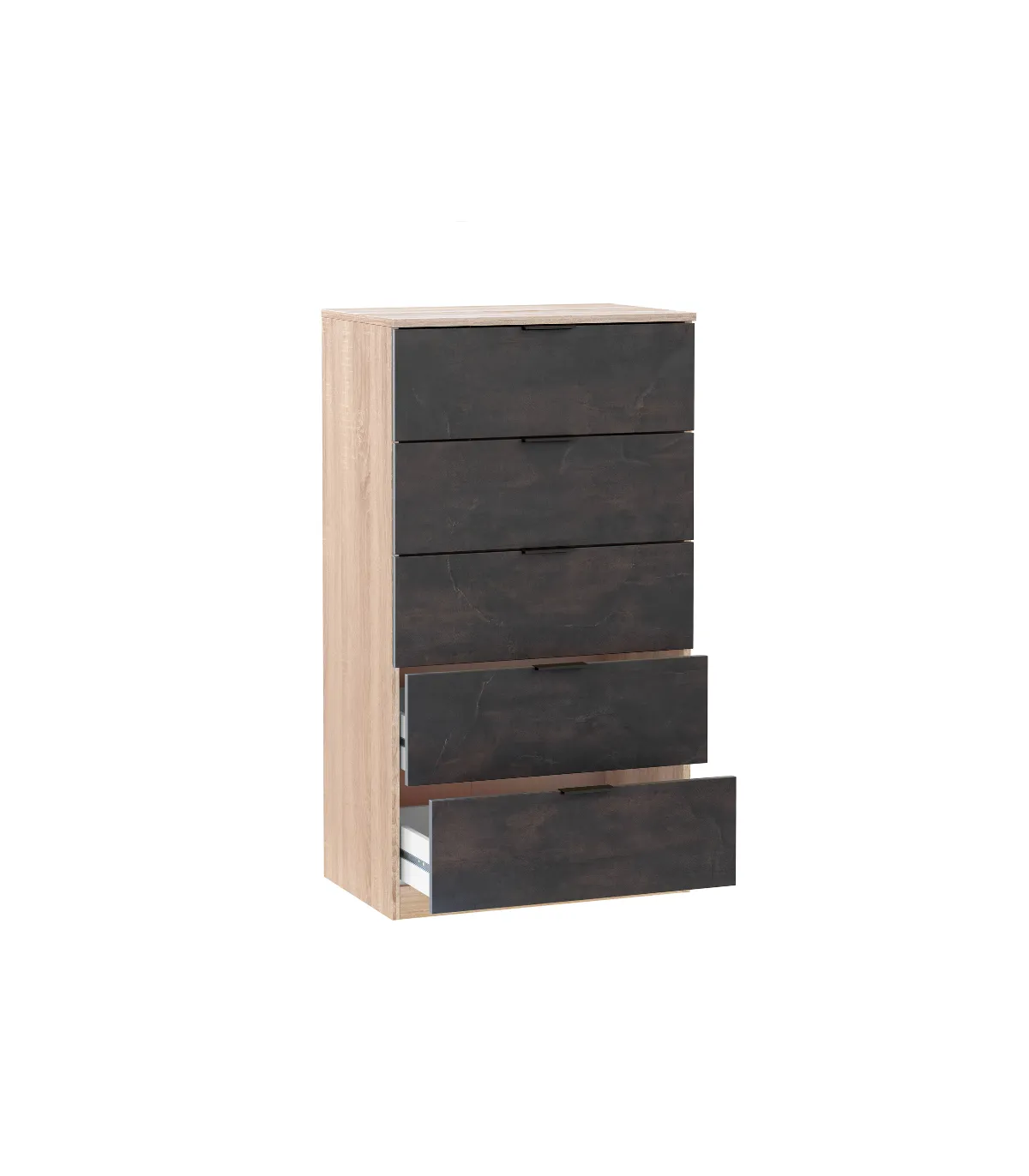 Sinfonier para quarto duplo, symfonier com 5 gavetas em carvalho canadense combinado com óxido.