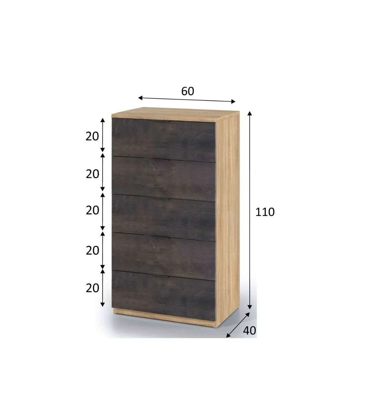 Sinfonier 5 gavetas terminou em carvalho canadian/oxid. 110cm (alta) 60cm (largura) 40cm (fone)