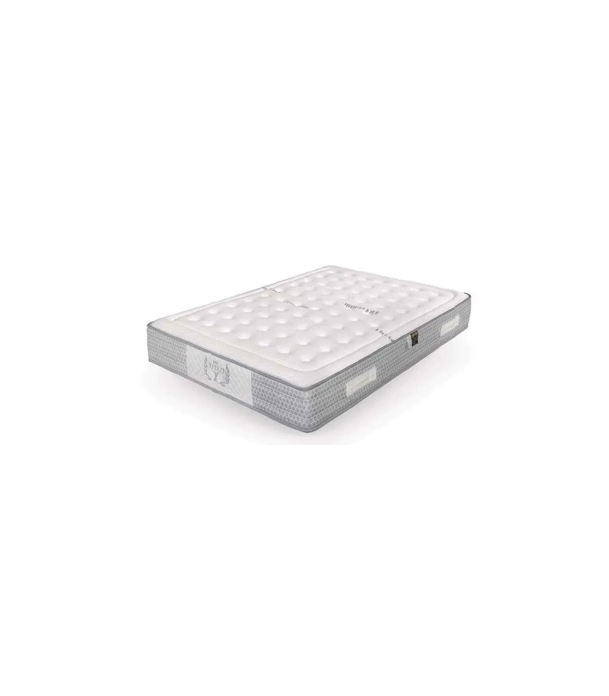 Plataforma acolchoada em tecido stretch cinza com desenho hexagonal, placa com bordado decorativo na frente, quatro alças brancas e excluidor de desenho a condizer.D/60 Kg/m3 colchão de núcleo composto mais placas super-soft ambos os lados do núcleo em duas densidades. Acolchoado em material superior viscoelástico superior projetado para fazer sua ruptura total mais etter super-suave alta densidade e fibras térmicas ajuda a respirar. Adapta-se ao contorno do corpo dependendo do peso sempre retornando à sua postura natural lentamente e suavemente proporcionando maior descanso. Cobertura de tecido do sistema strech branco bioceramic suave toque na face superior e face inferior no tecido de grade 3D AIR cinza. Ele fornece máxima respirabilidade permitindo circulação de ar.