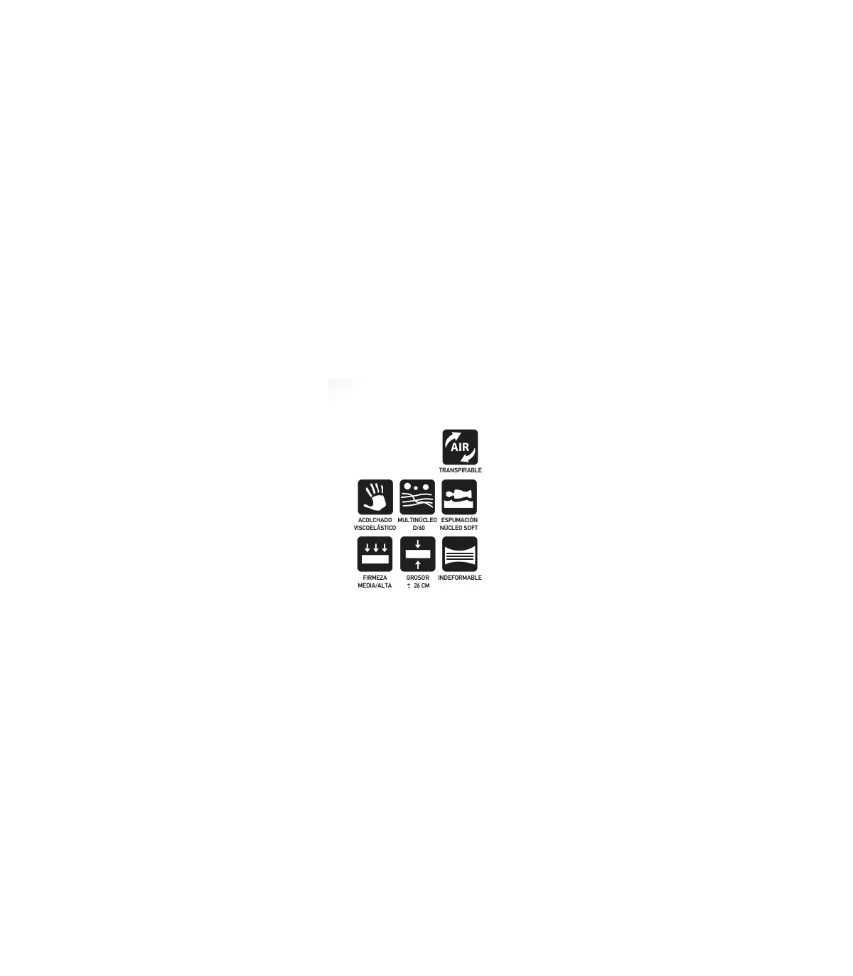 Colchão com núcleo HR, viscoelástico e respirável