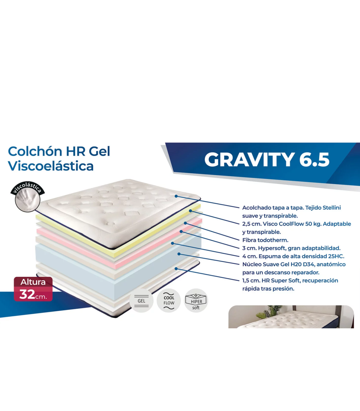 Colchão viscoelástico de 150 x 190 de 32 cm que combina núcleo de espuma com gel e cool do viscoel'stica, proporcionando frescor, alívio e durabilidade máxima. Ideal para aqueles que buscam conforto, apoio e noite de um sono tranquilo.