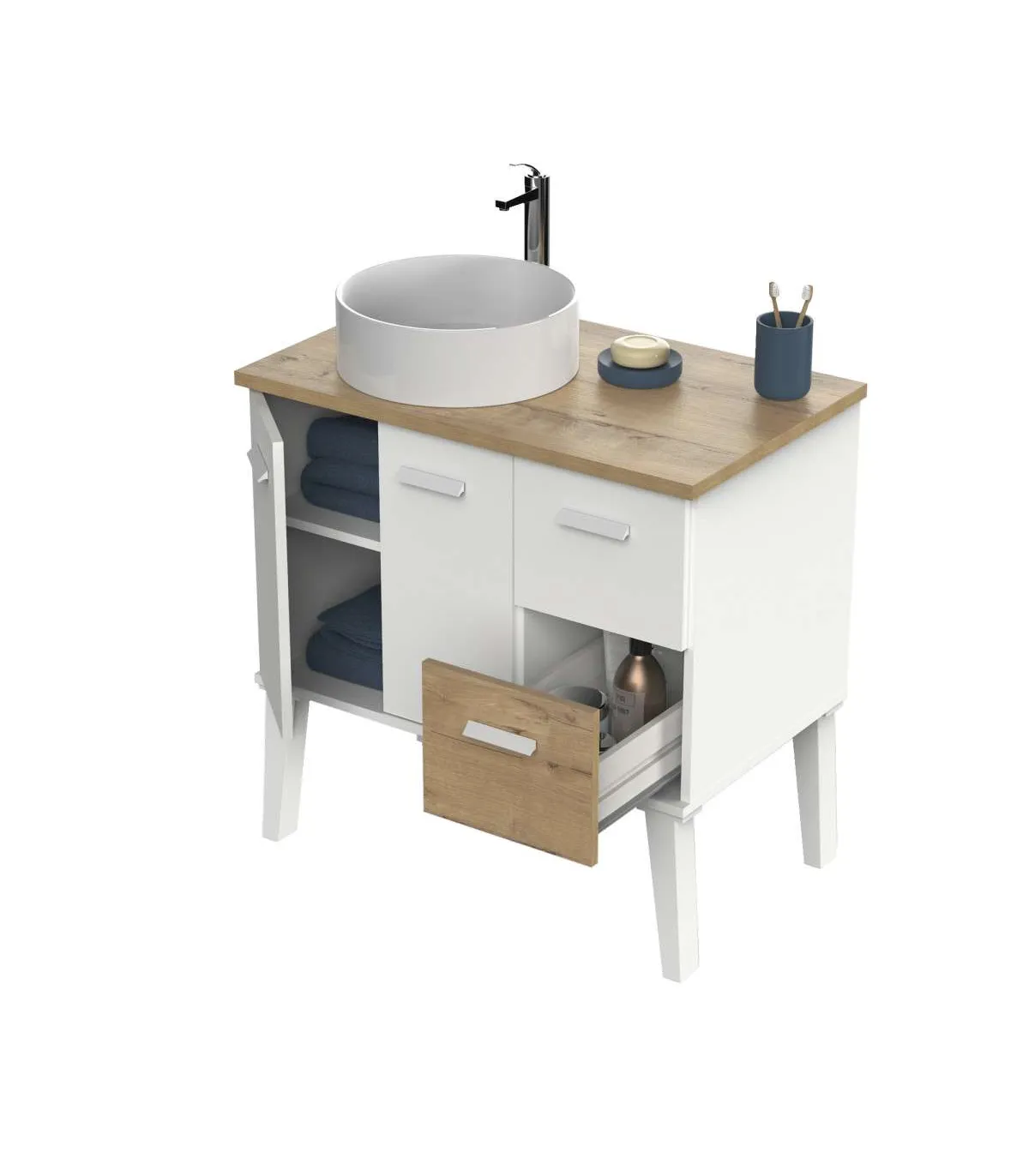 Transforme sua casa de banho em um espaço funcional e elegante com nossa mobília do banheiro. Projetado para combinar armazenamento e estilo, este conjunto é essencial para um banheiro organizado.